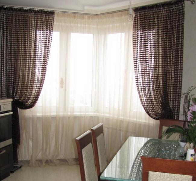 - من قماش التول على شكل شبكة ، ستظهر الستائر الأحدث والأخف والأكثر عملية! الشيء الأكثر قيمة بالنسبة للأشخاص المشغولين - نادراً ما يحتاجون إلى الغسيل! بالنسبة لي هو مهم جدا! إذا كانت الشبكة كبيرة ، فيمكنك التخلص من الغبار دون إضاعة الوقت في الغسيل! لدي بالضبط هذا. في الغرفة ، علقت لوحات من ظلال مختلفة - بيضاء وزرقاء ، مجمعة في ثنايا. أعتقد أنه كان مثيرا للاهتمام!