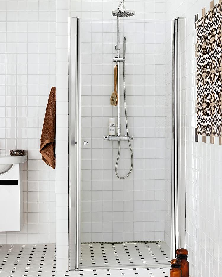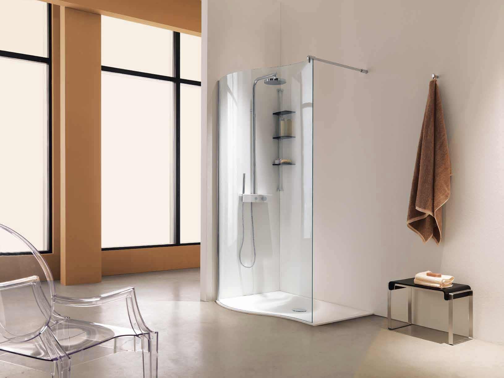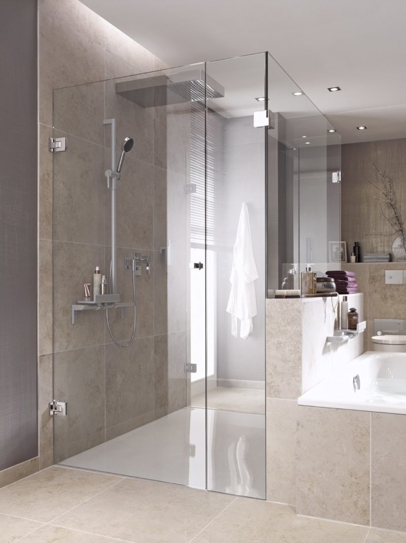 ستارة الدش الزجاجي تبدو رائعة. لتثبيت تأخذ الزجاج المعالجة الخاصة. غالبًا ما يستخدم ثلاثي - زجاج خاص به فيلم واقية على كلا الجانبين. عند حدوث صدمة تأثير ، لا ينهار الزجاج ، وتبقى الأجزاء المكسورة داخل الفيلم الخاص. دش جديد يشمل: صينية ، مقصورة ، مكانة. إذا كنت تستخدم ستائر دش زجاجية ، فيمكنك صنع مكانًا مناسبًا لاحتواء مختلف الملحقات والأشياء. مقارنة بالكبائن القياسية ، قد لا تحتوي الأبواب الزجاجية على منصة نقالة. يمكن أن يكون الجزء السفلي منهم مزين بالبلاط ، حيث يستخدم الحشو الزجاج. بعد اجتياز عملية التبريد ، ستصبح هذه المواد أكثر دواما وأمانًا.