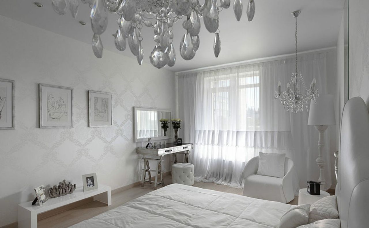 التصميم الداخلي مع تول الأبيض: ميزات جنبا إلى جنب مع الجدران وورق الجدران والأثاث