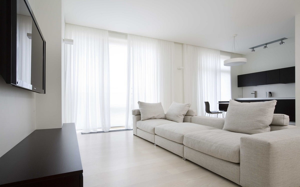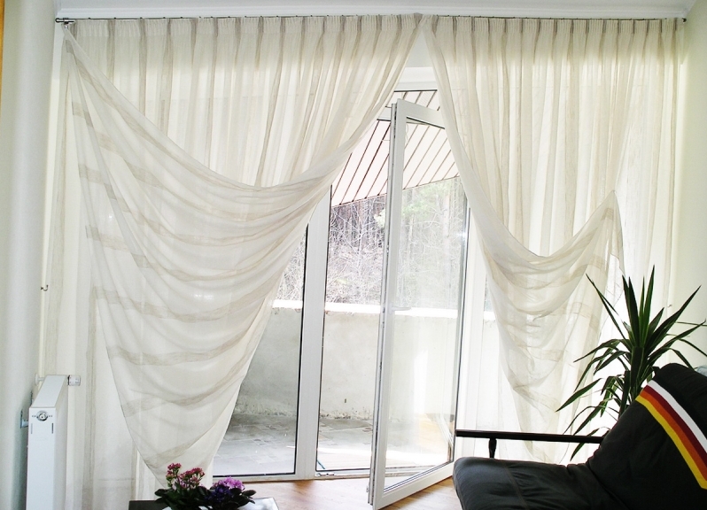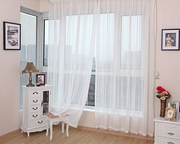 ستائر فرنسية من القماش الأبيض الشفاف تبدو أنيقة