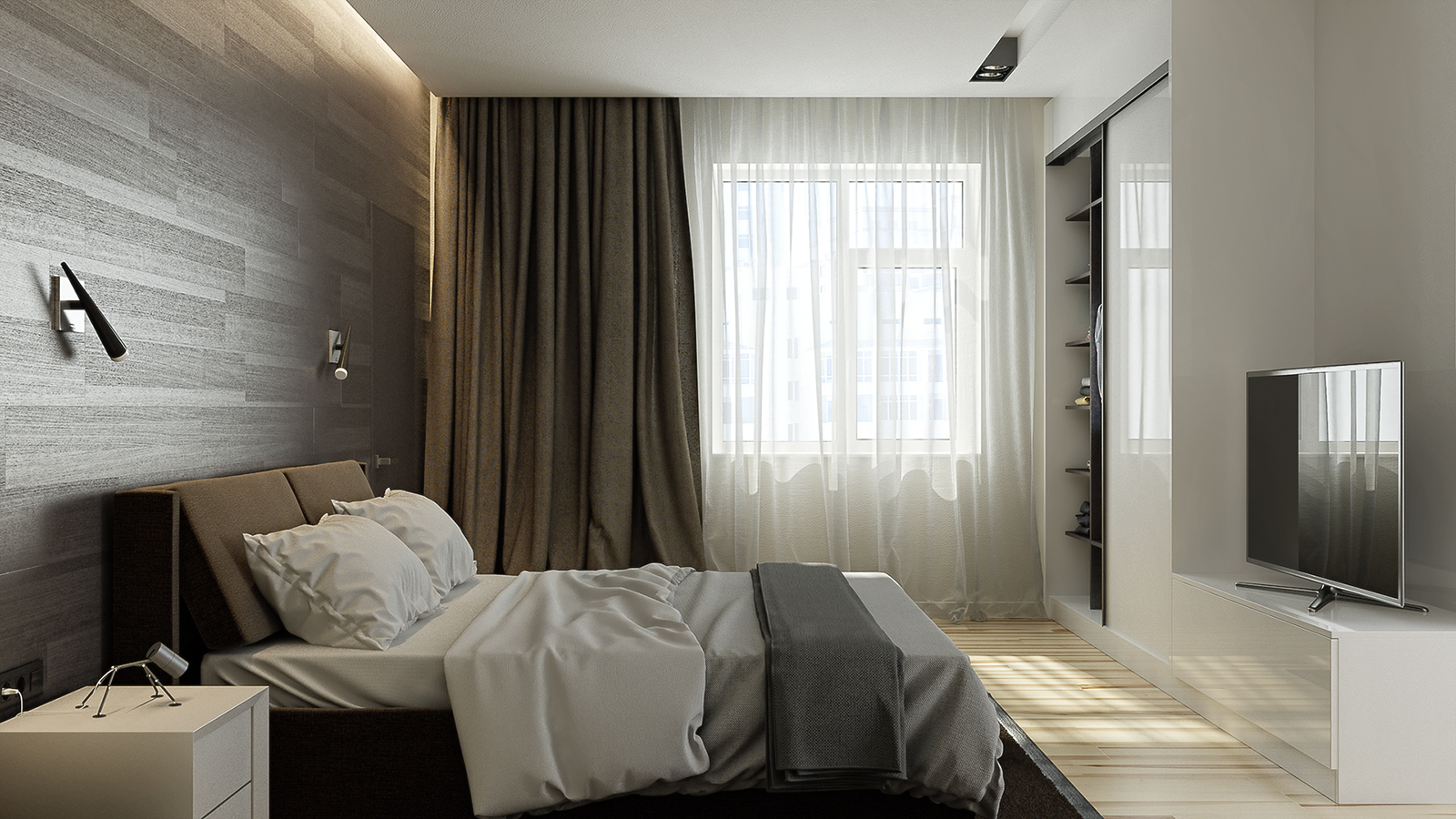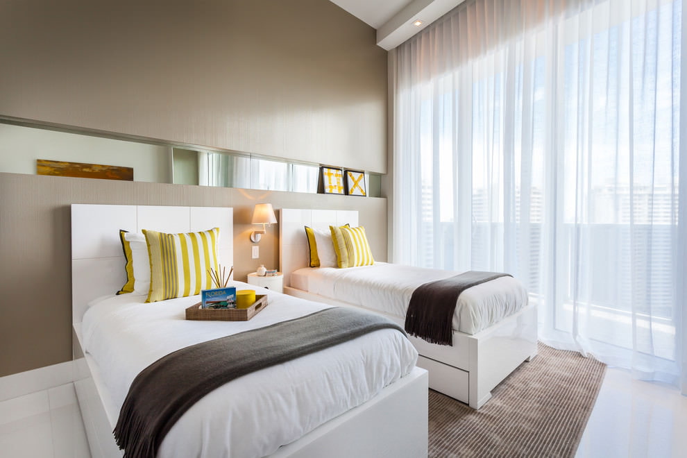 ستائر مع تطريز في الداخل من غرفة نوم حديثة