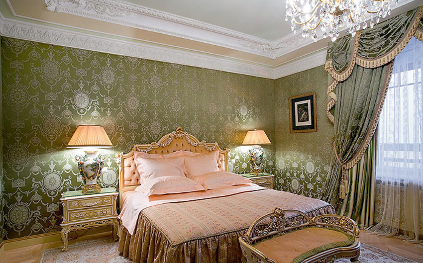 عادةً ما يتم استخدام قماش الكتان الطبيعي لأنماط اللاكونيك ، ولكن التطريز الذهبي والأحرف الرائعة ستكمل بشكل مناسب حتى النمط الكلاسيكي الفاخر ، مع العديد من الطيات والعناصر الزخرفية.