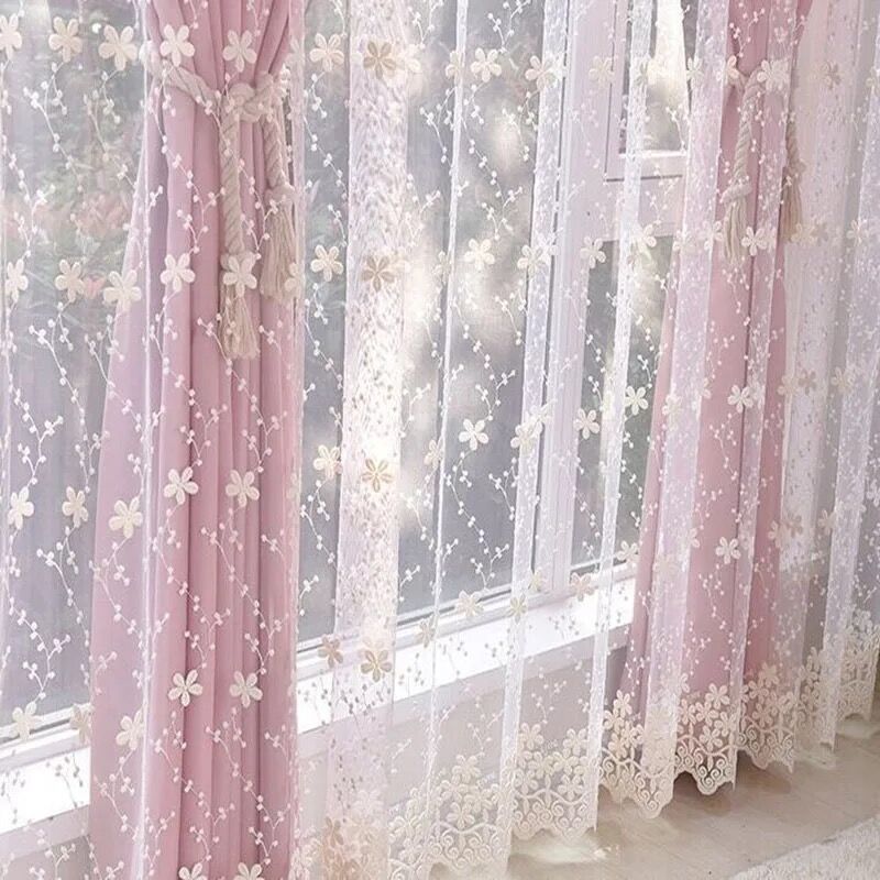 حل غير عادي: يتم وضع تول مع التطريز على رأس تول أحادية اللون. تصميم مخصص يعطي الداخلية أنيقة خاصة.