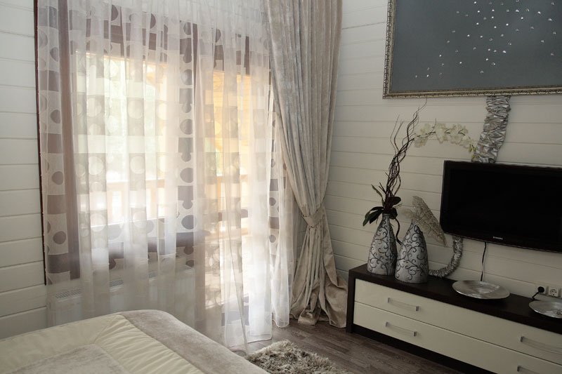 مزيج الستائر الخفيفة مع ستارة تول مناسب لغرفة بها نوافذ في الشمال ، وحتى بالنسبة للنوافذ الجنوبية ، إذا قمت بإضافة الستائر أو الستائر الرومانية