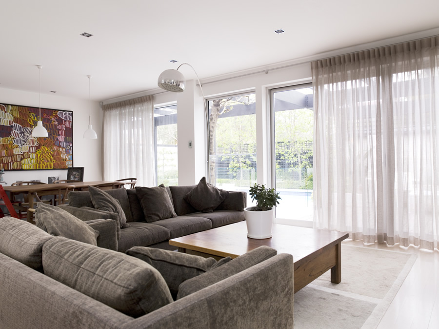 نسيج الكتان اللامع يسير على ما يرام مع ستائر من القطن