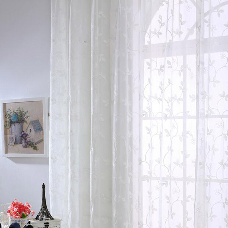 خوفًا من أن تبدو زخرفة النافذة باللون الأبيض وكأنها مؤخر أو في المستشفى ، يمكنك اختيار الستائر ذات التطريز. لغرفة النوم - وهذا هو خيار كبير. يخلق على الفور جو خاص من العزاء والراحة.