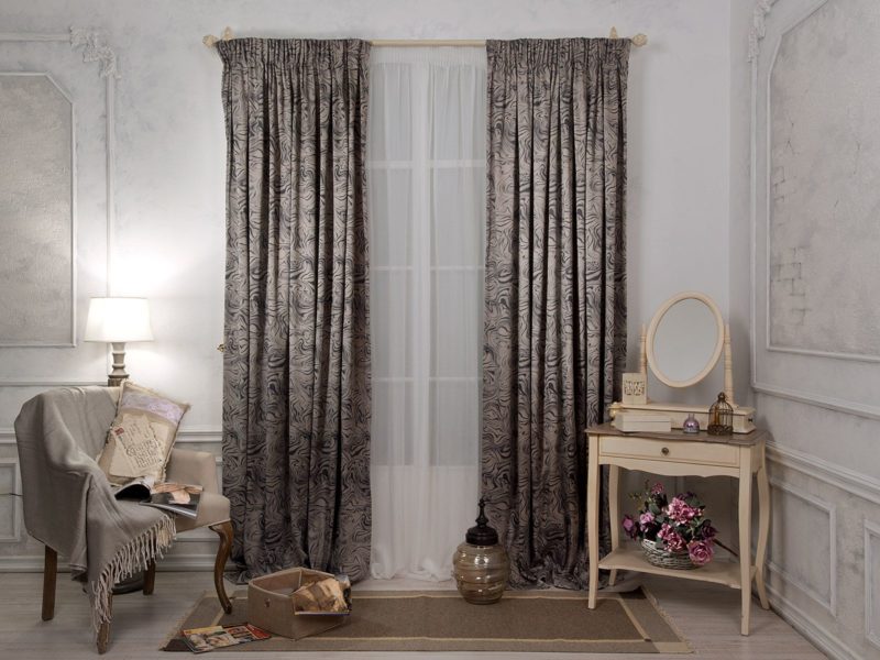 ستظل الستائر الداكنة مميزة في الداخل ، إذا كان الأثاث أخف وزناً