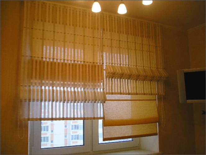 للتثبيت مباشرة على النوافذ المتحركة ، يتم إنتاج نماذج مدمجة من الستائر الرومانية.