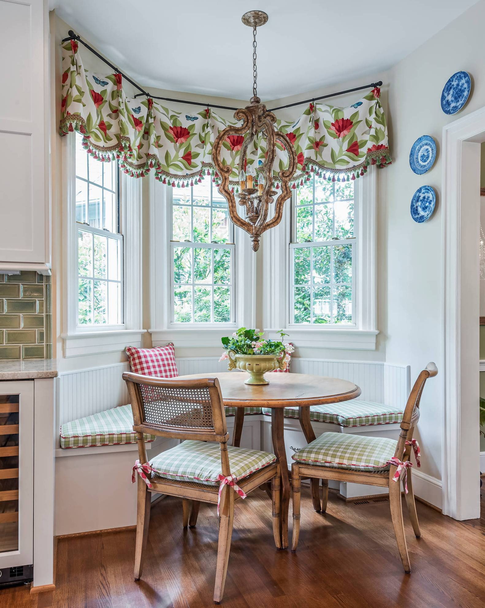 أحد المتغيرات الكلاسيكية الأكثر تقليدية لتزيين النوافذ هو استخدام كورنيش للستائر على شريط دائري.