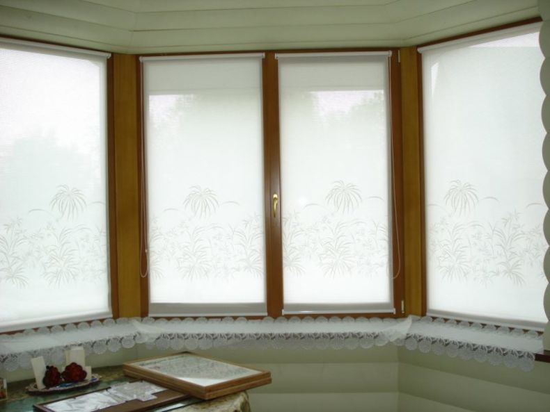 الميزة الرئيسية لتركيب اللفات على النوافذ المزدوجة الزجاج هي أن بكرة الستائر مثبتة على الإطارات نفسها. مع هذا المرفق ، يغطي قماش الستارة مباشرة زجاج النافذة ، مما يجعل من الممكن استخدام قماش الرسم بشكل أكثر اقتصادا.