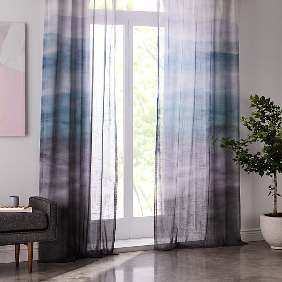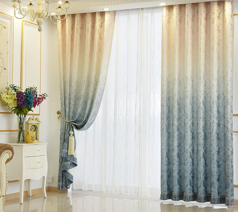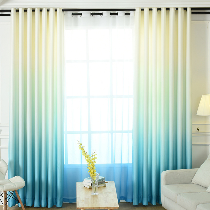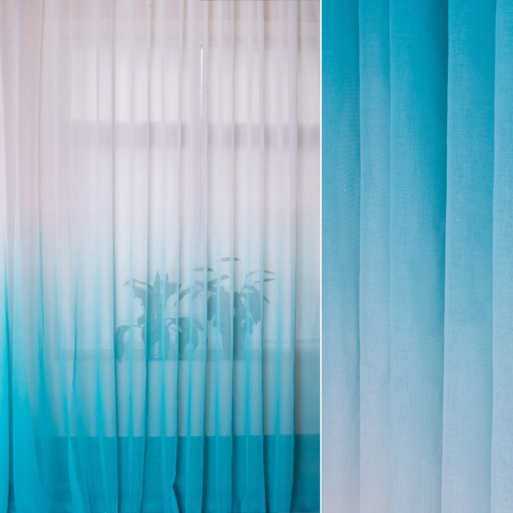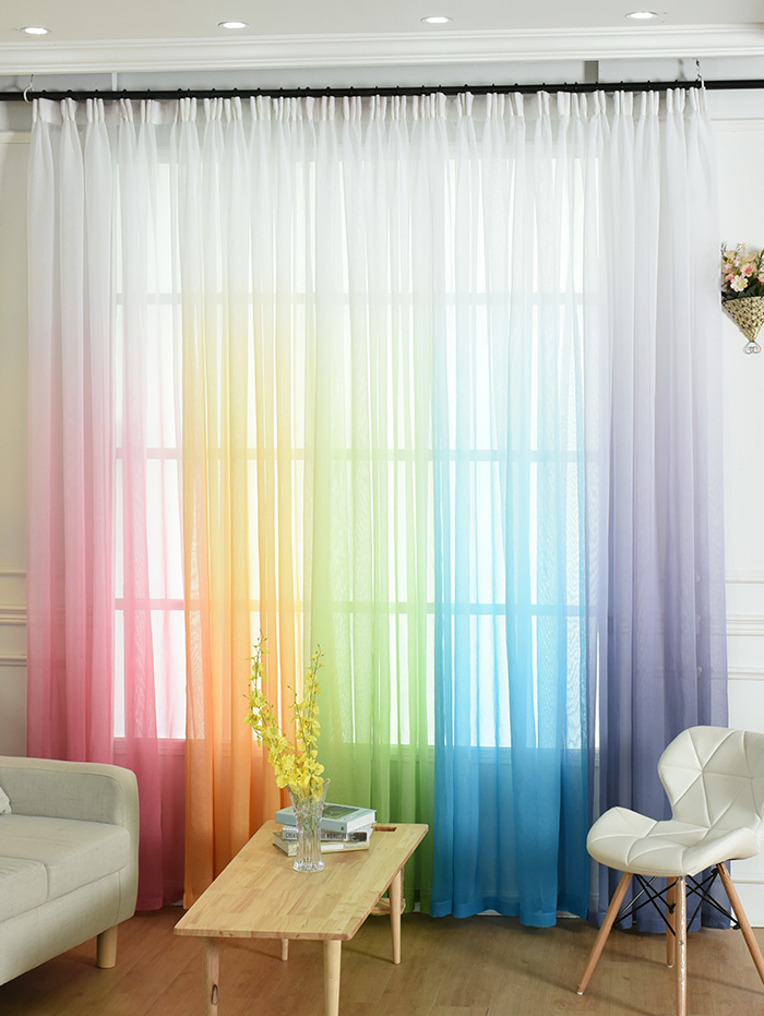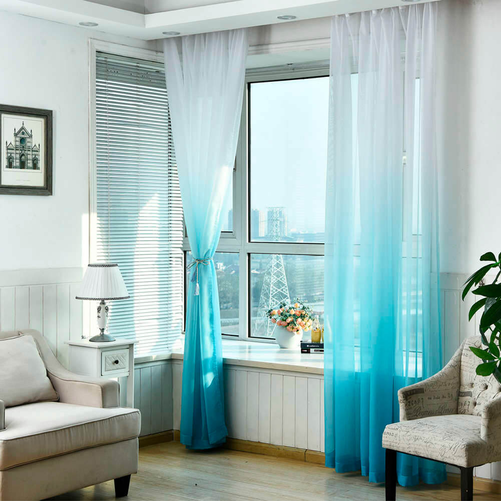 تحتوي الصورة على تول متدرج مع انتقال لون عمودي. ستعمل هذه الستائر على تزيين غرفة المعيشة بلا شك ، وخلق جو خاص وسيتذكرها ضيوفك.