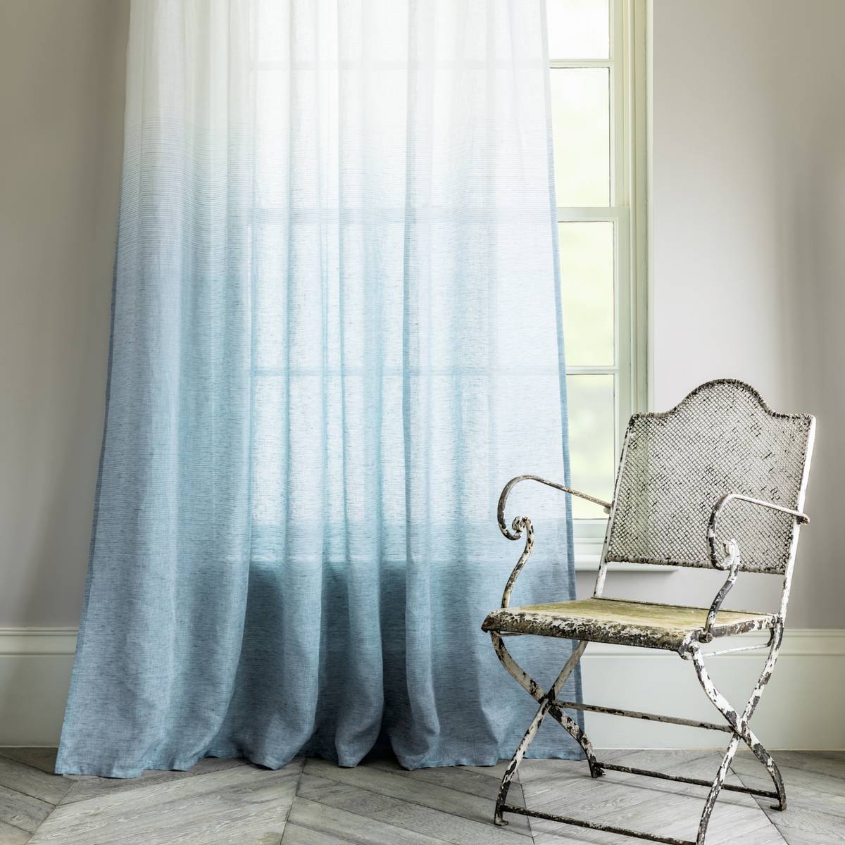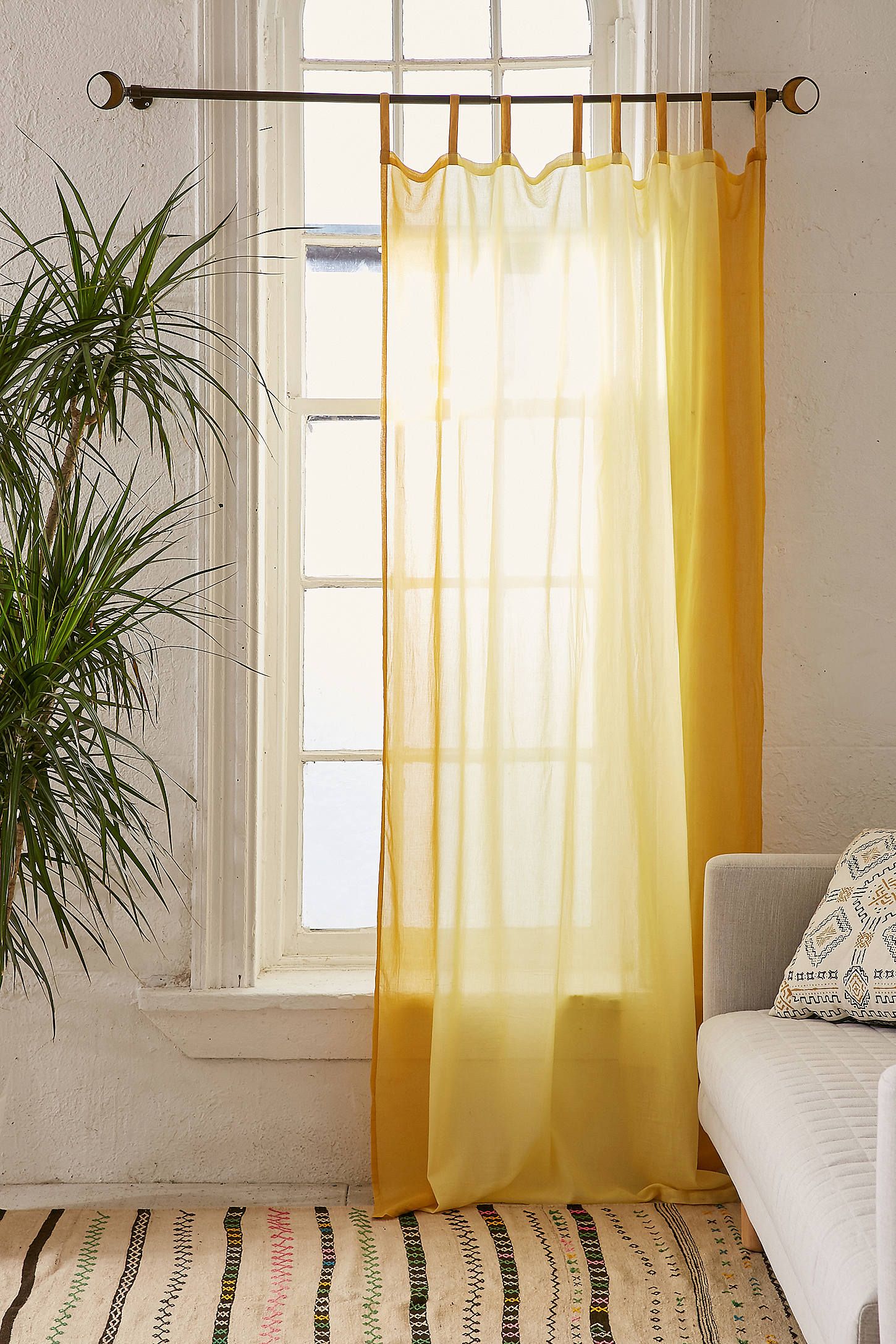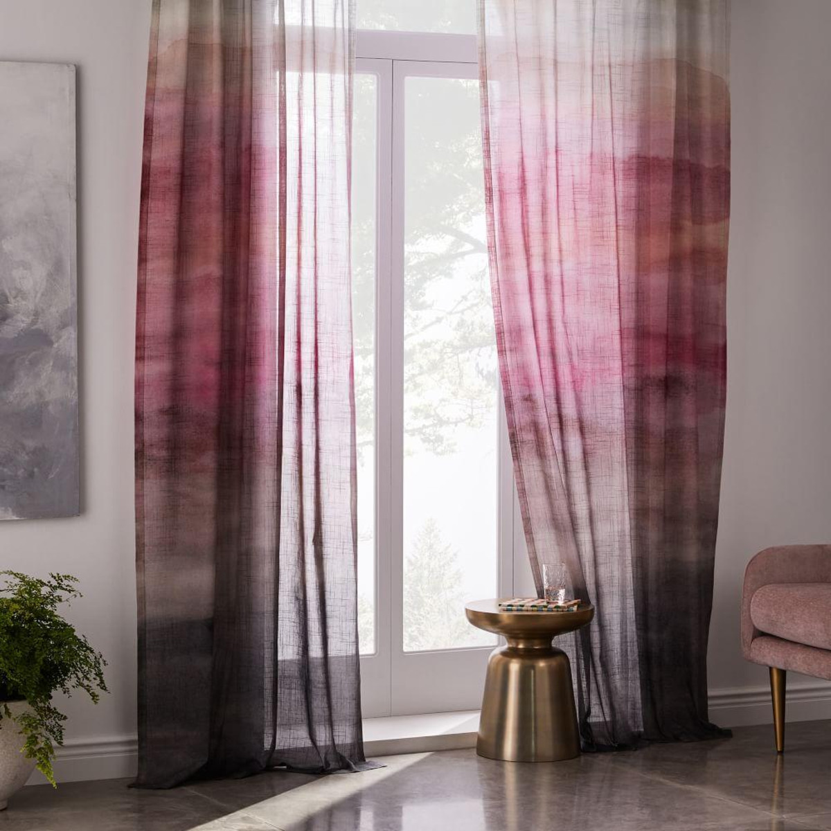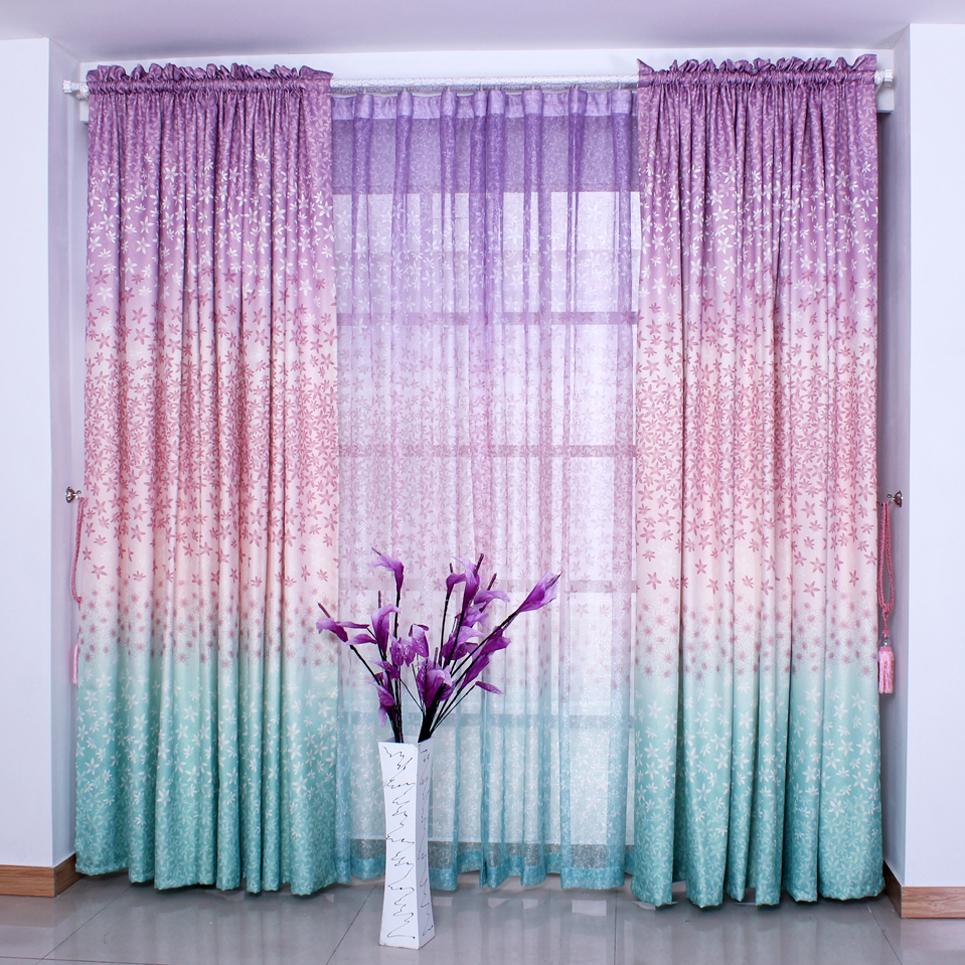 تحتوي الصورة على تول متدرج مع انتقال لون عمودي. ستعمل هذه الستائر على تزيين غرفة المعيشة بلا شك ، وخلق جو خاص وسيتذكرها ضيوفك.