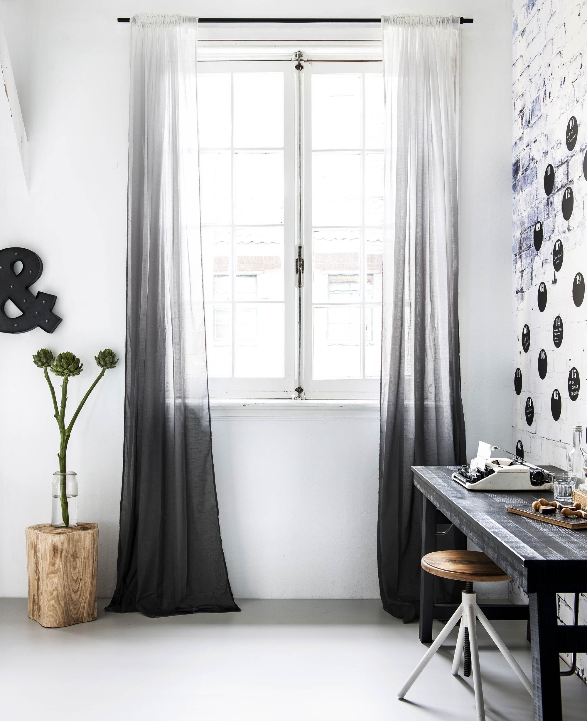 - يبدأ الجو الأكثر "باللون الرمادي" باللعب بألوان زاهية بفضل الستائر غير العادية.