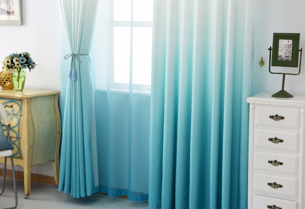 تجدر الإشارة إلى أنه حتى أبسط طراز من الستائر تبدو إبداعية بسبب تأثير ombré.