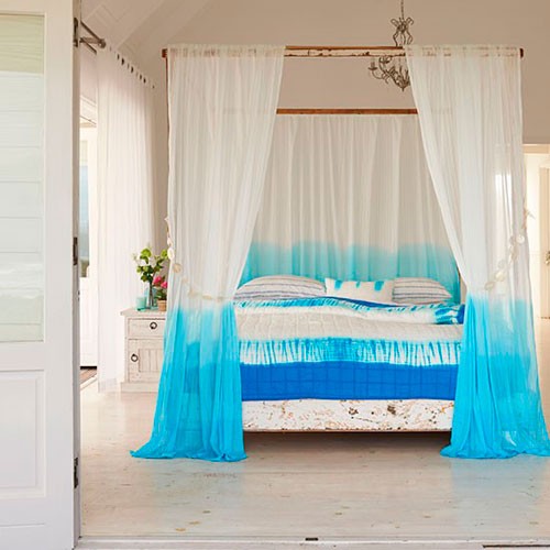لغرفة النوم هي ظلال "الباردة" مثالية. بفضلهم سيكون النوم قوياً وهادئاً. الفيروز هو خيار رائع. للحصول على تناسق داخلي كامل ، أضف "ملاحظات" فيروزية. كخيار ، وسادة من نفس الظل أو الصورة مناسبة.