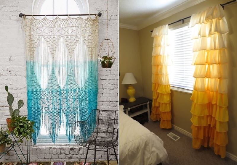يمكن للستائر ذات انتقال اللون أن يكون لها تصميم مختلف. هنا فقط بعض الخيارات.