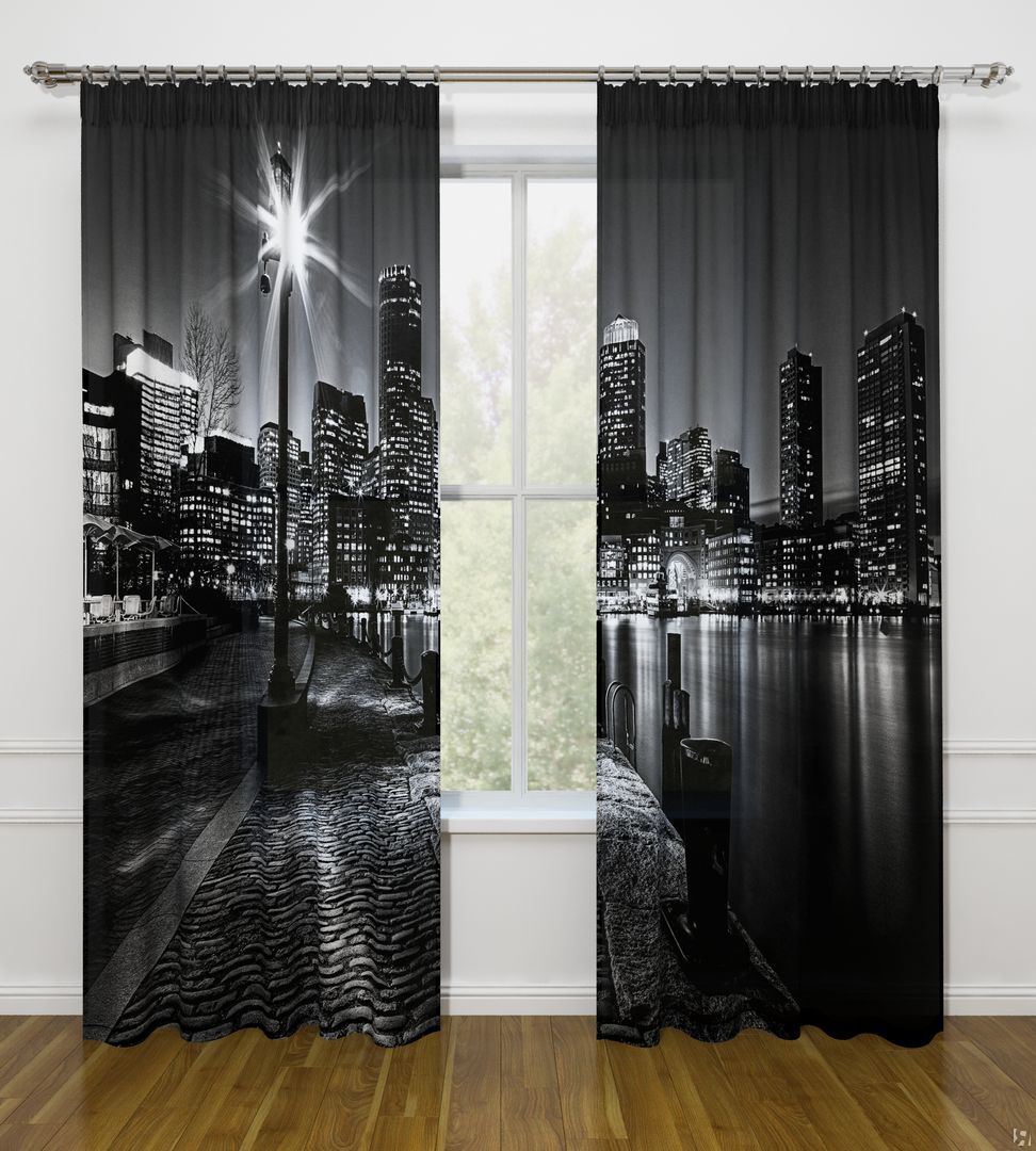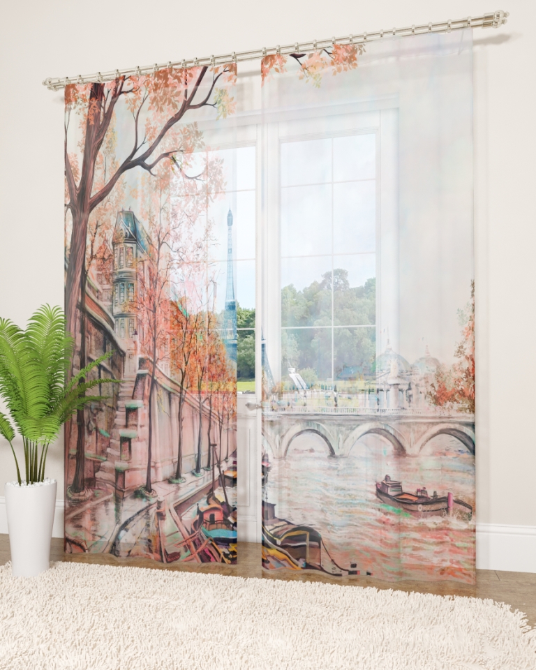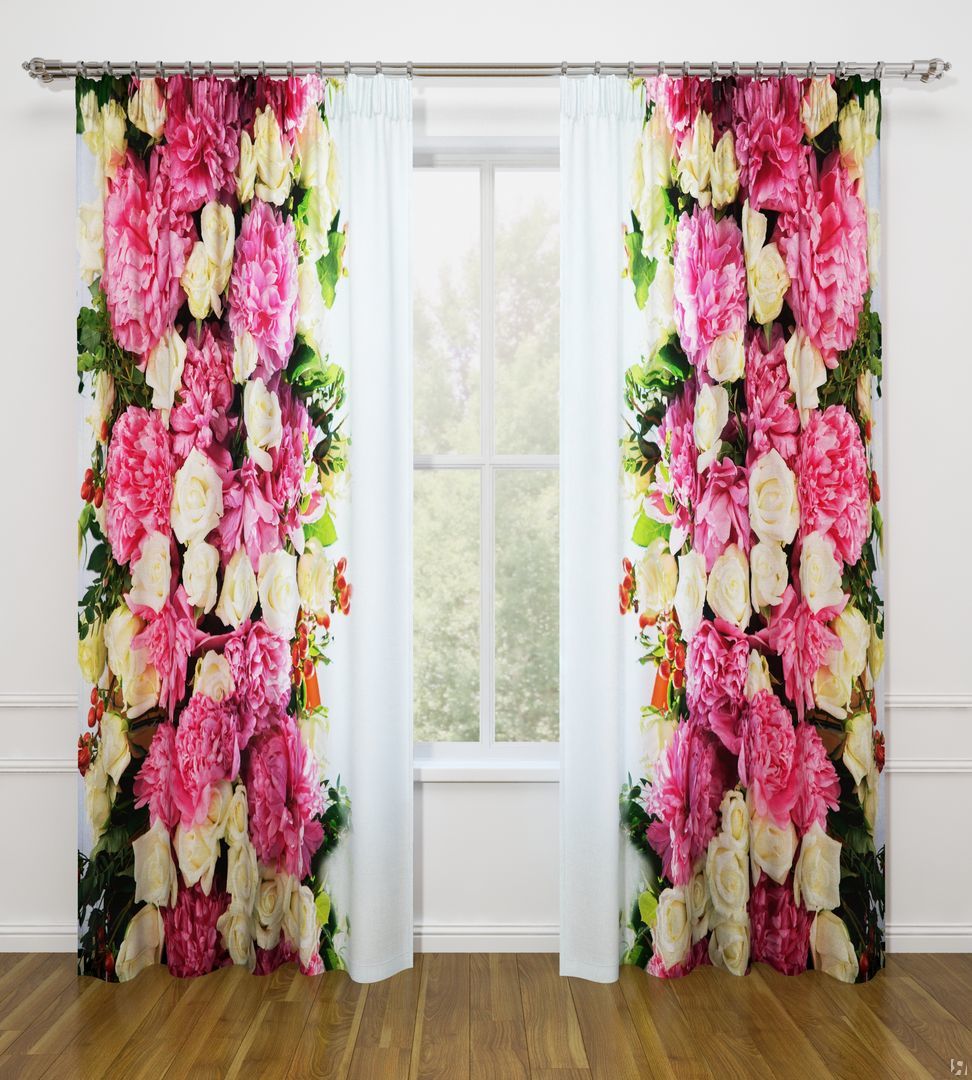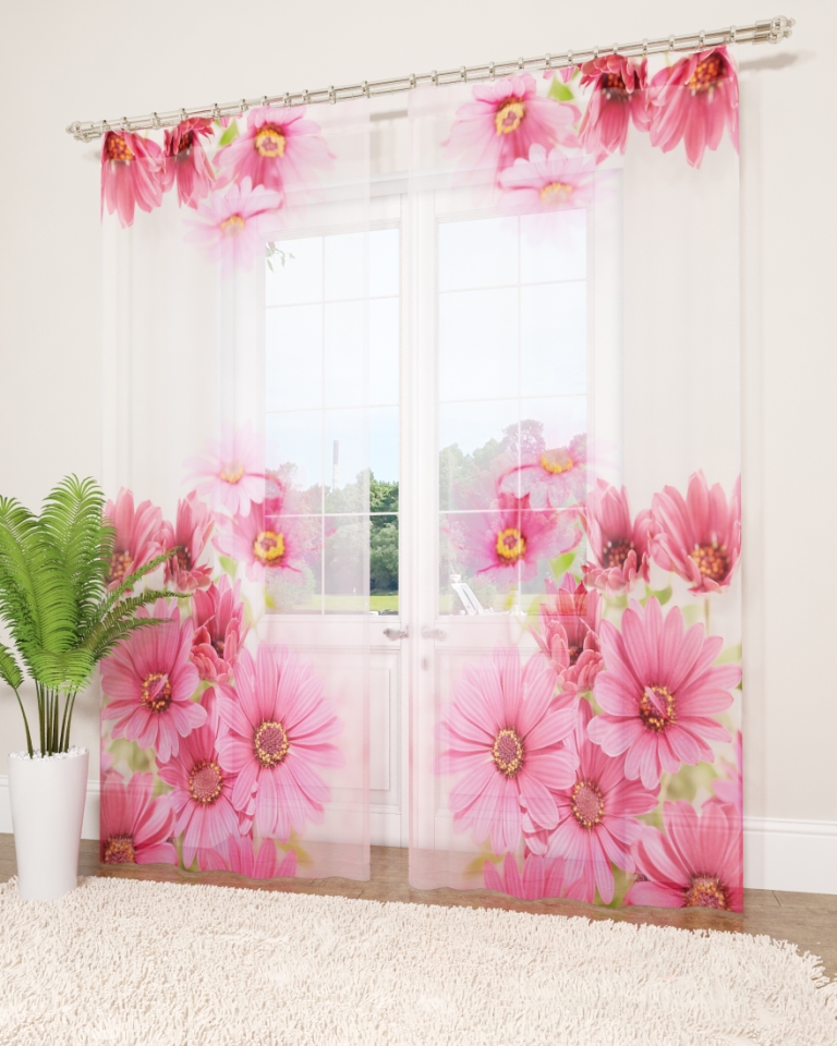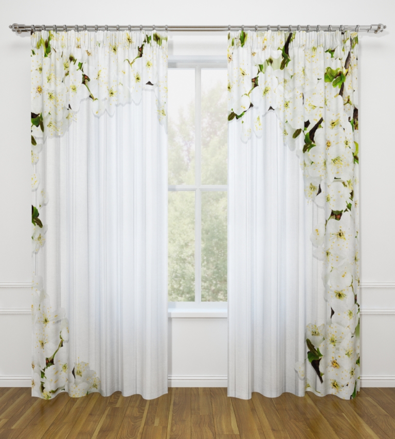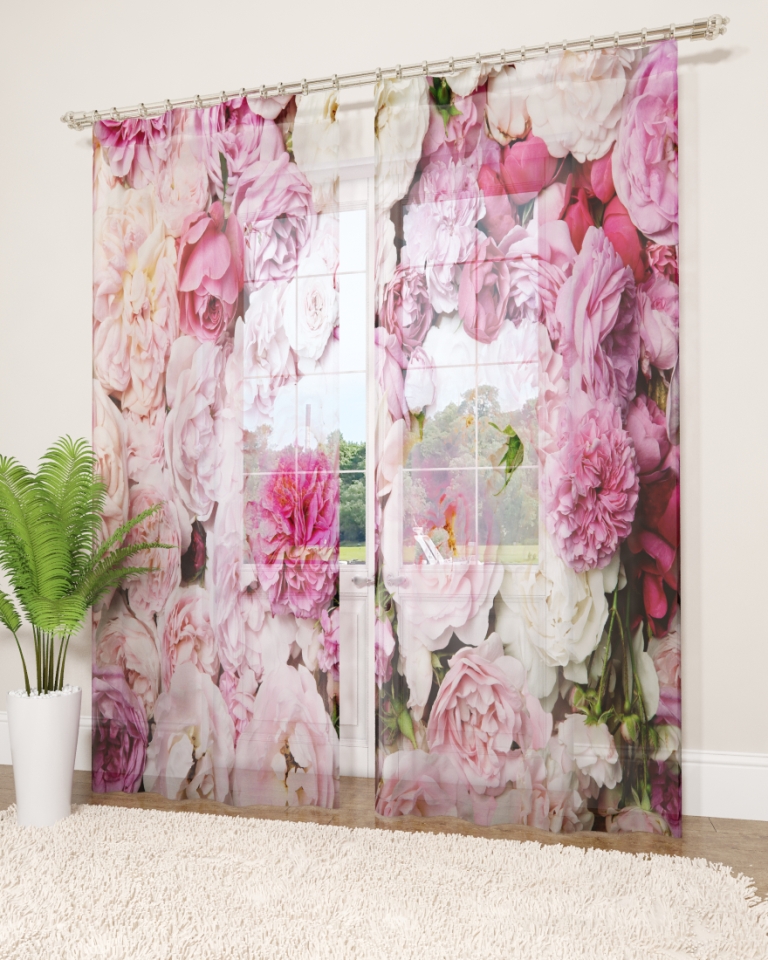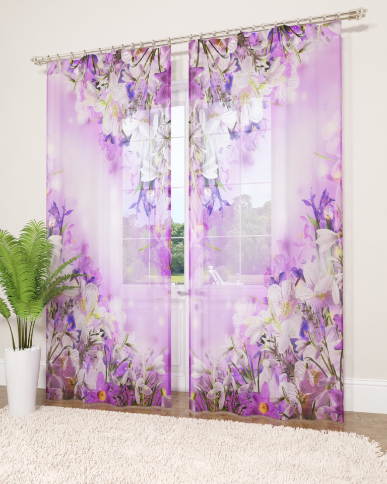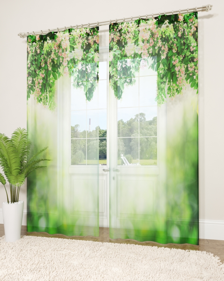 النموذج عبارة عن مجموعة من الستائر والتول. ستائر الطباعة تعطي تأثيرات بصرية ثلاثية الأبعاد ، وتتألف من الأجزاء الداخلية والخارجية.