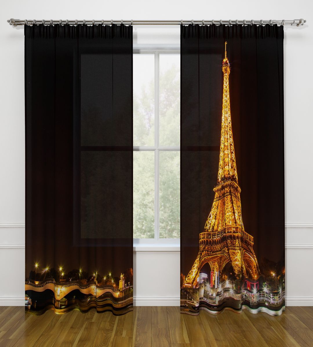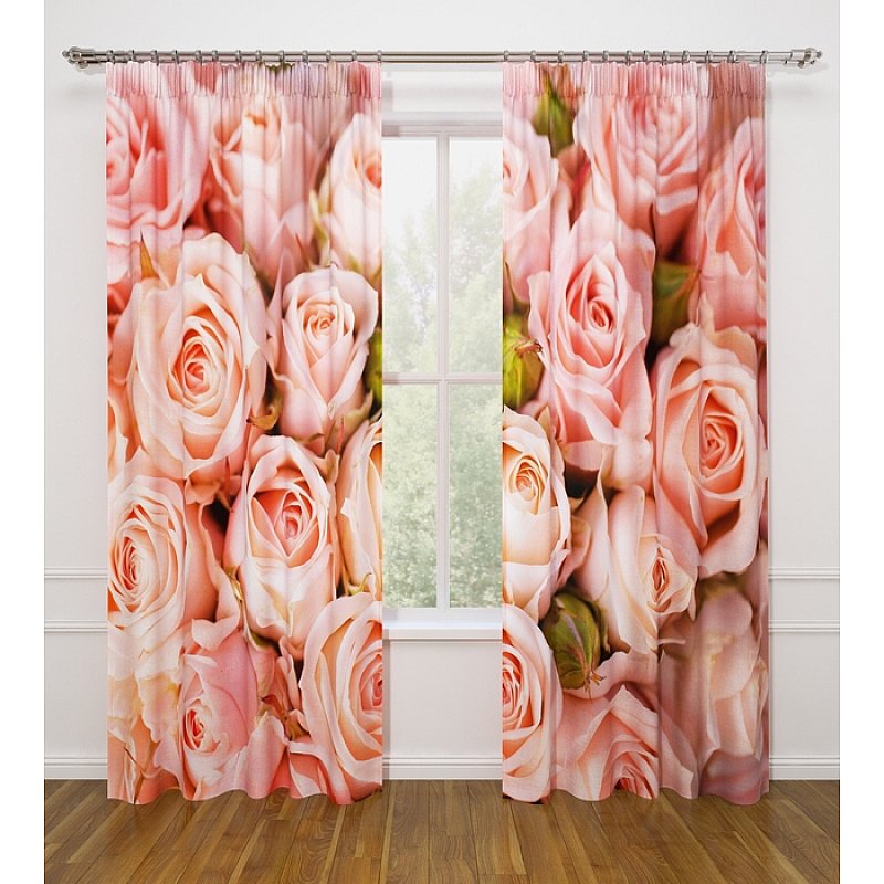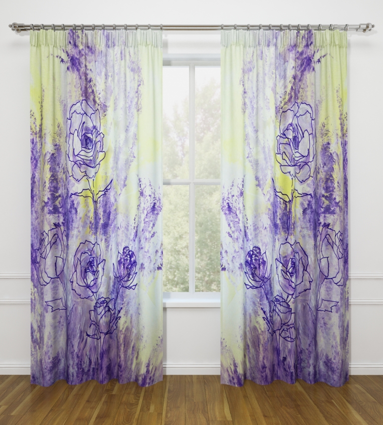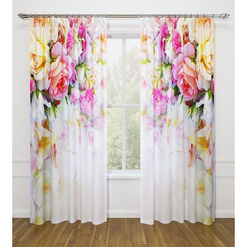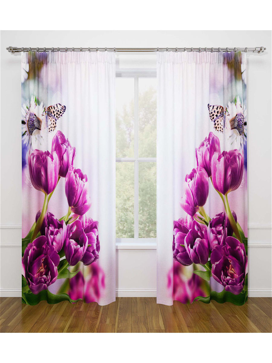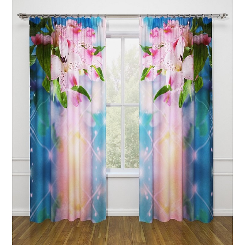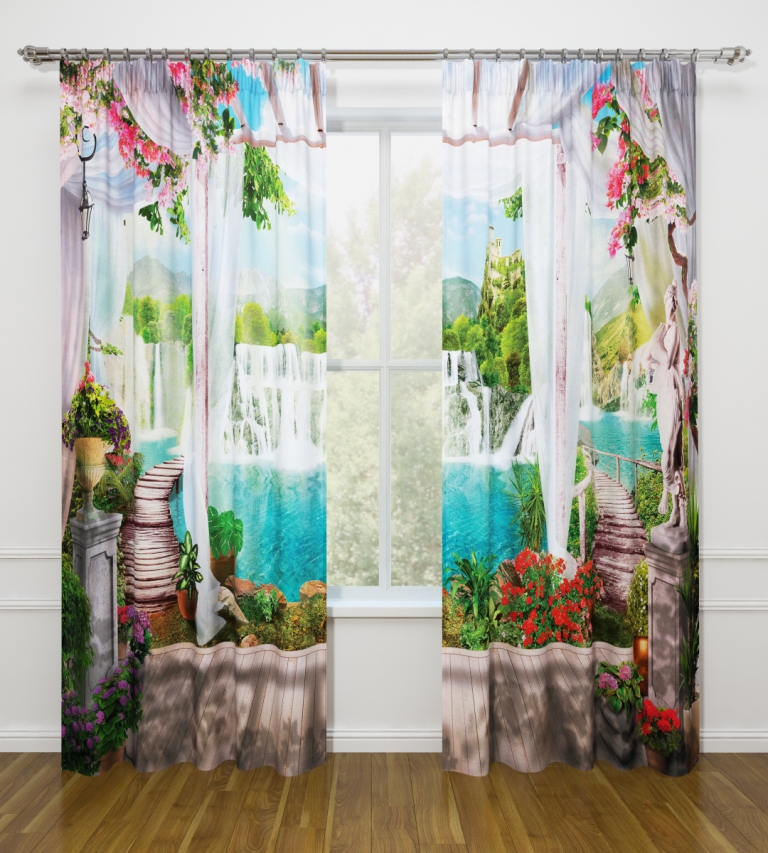 النموذج عبارة عن مجموعة من الستائر والتول. ستائر الطباعة تعطي تأثيرات بصرية ثلاثية الأبعاد ، وتتألف من الأجزاء الداخلية والخارجية.