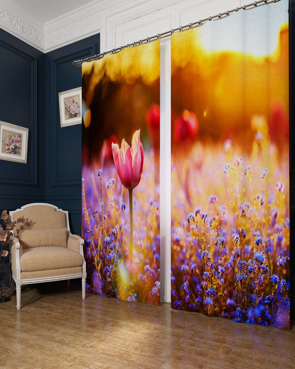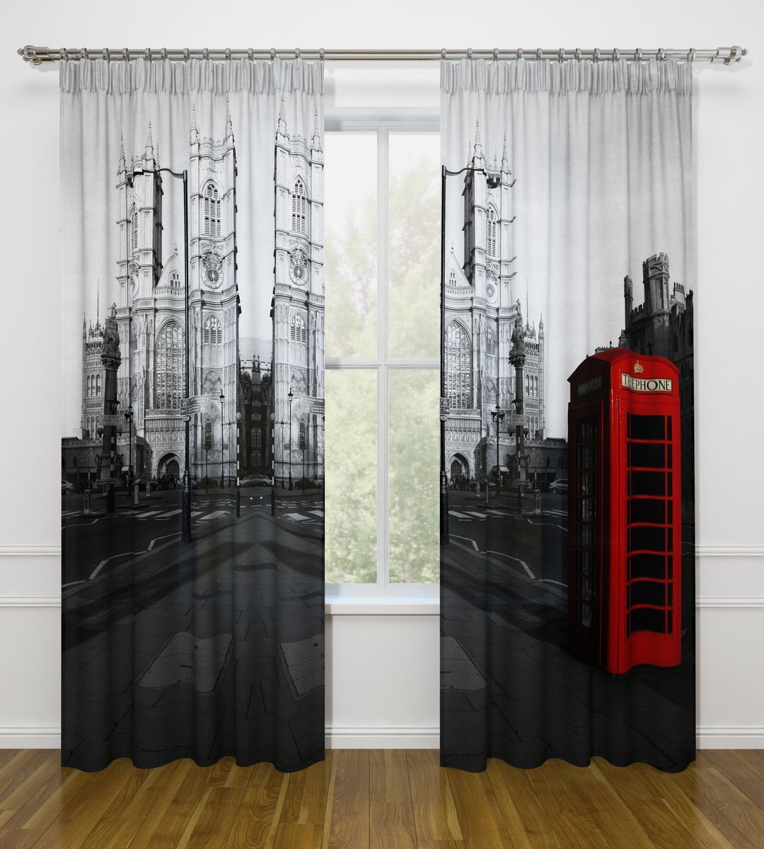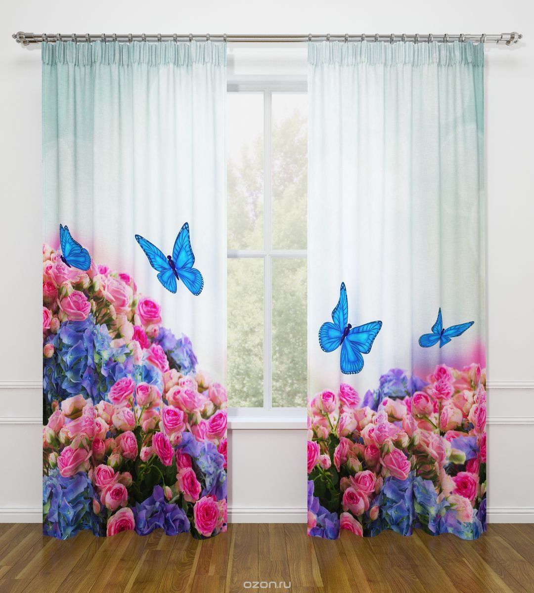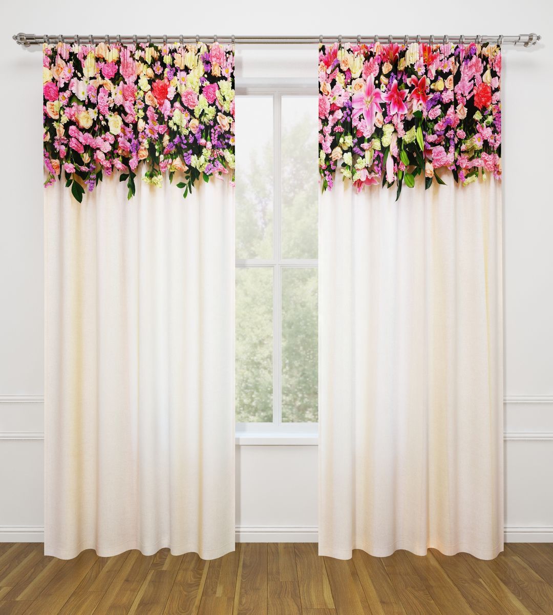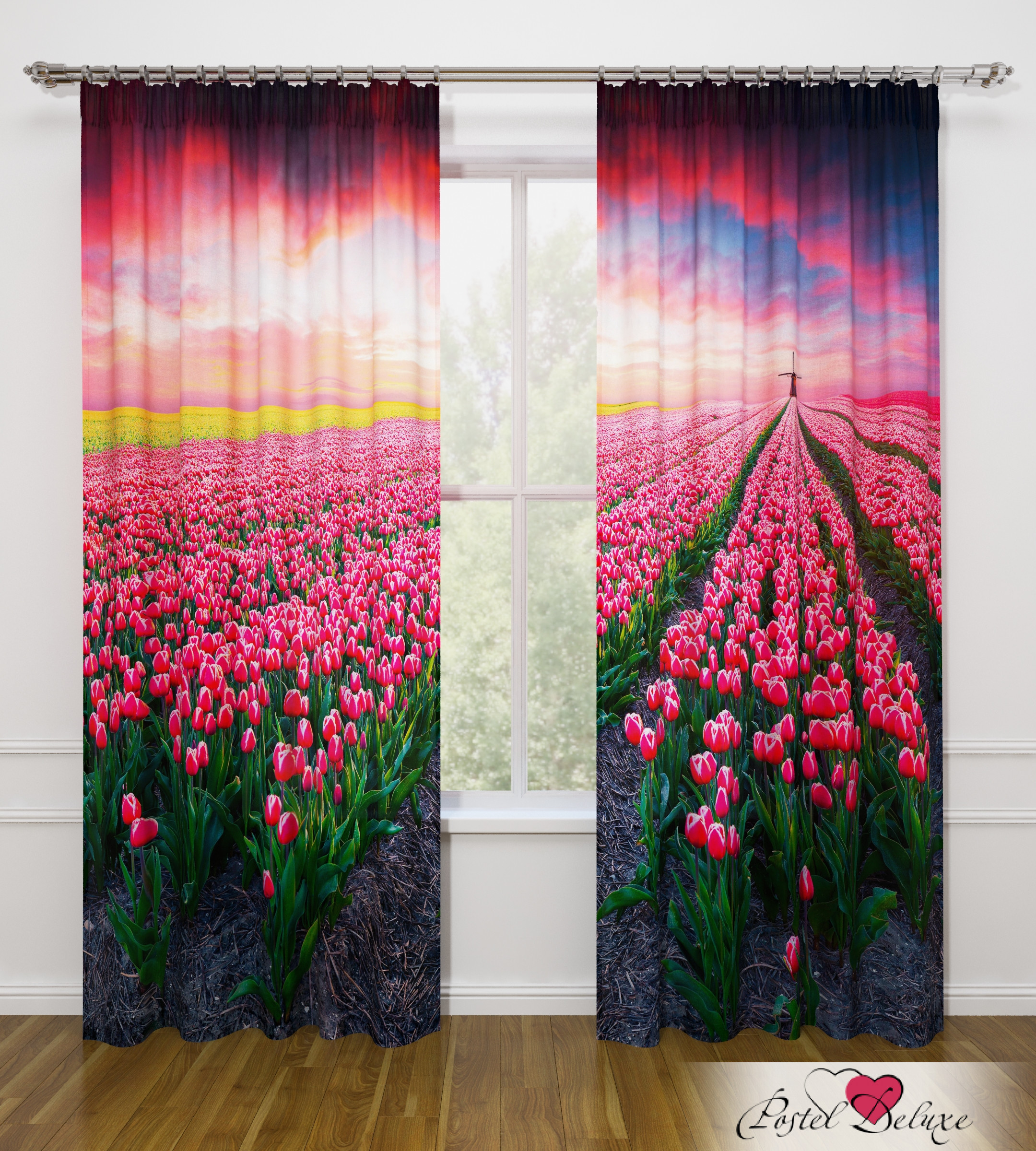 النموذج عبارة عن مجموعة من الستائر والتول. ستائر الطباعة تعطي تأثيرات بصرية ثلاثية الأبعاد ، وتتألف من الأجزاء الداخلية والخارجية.