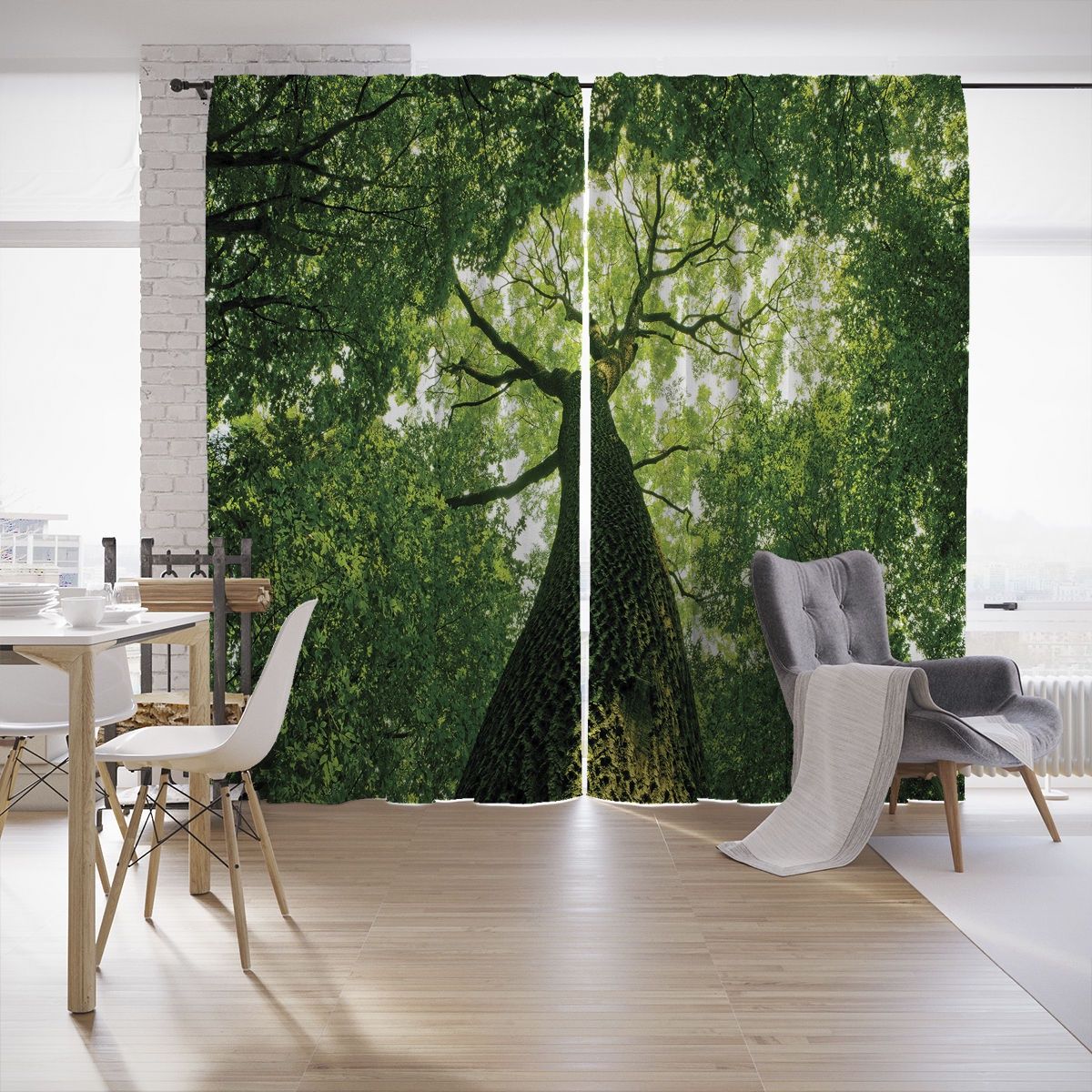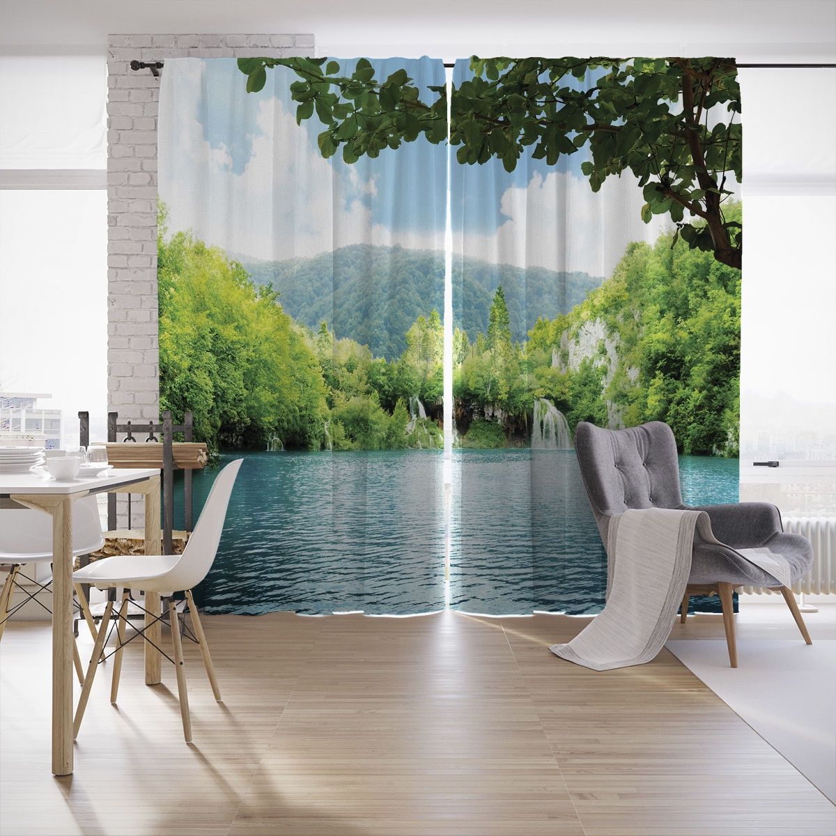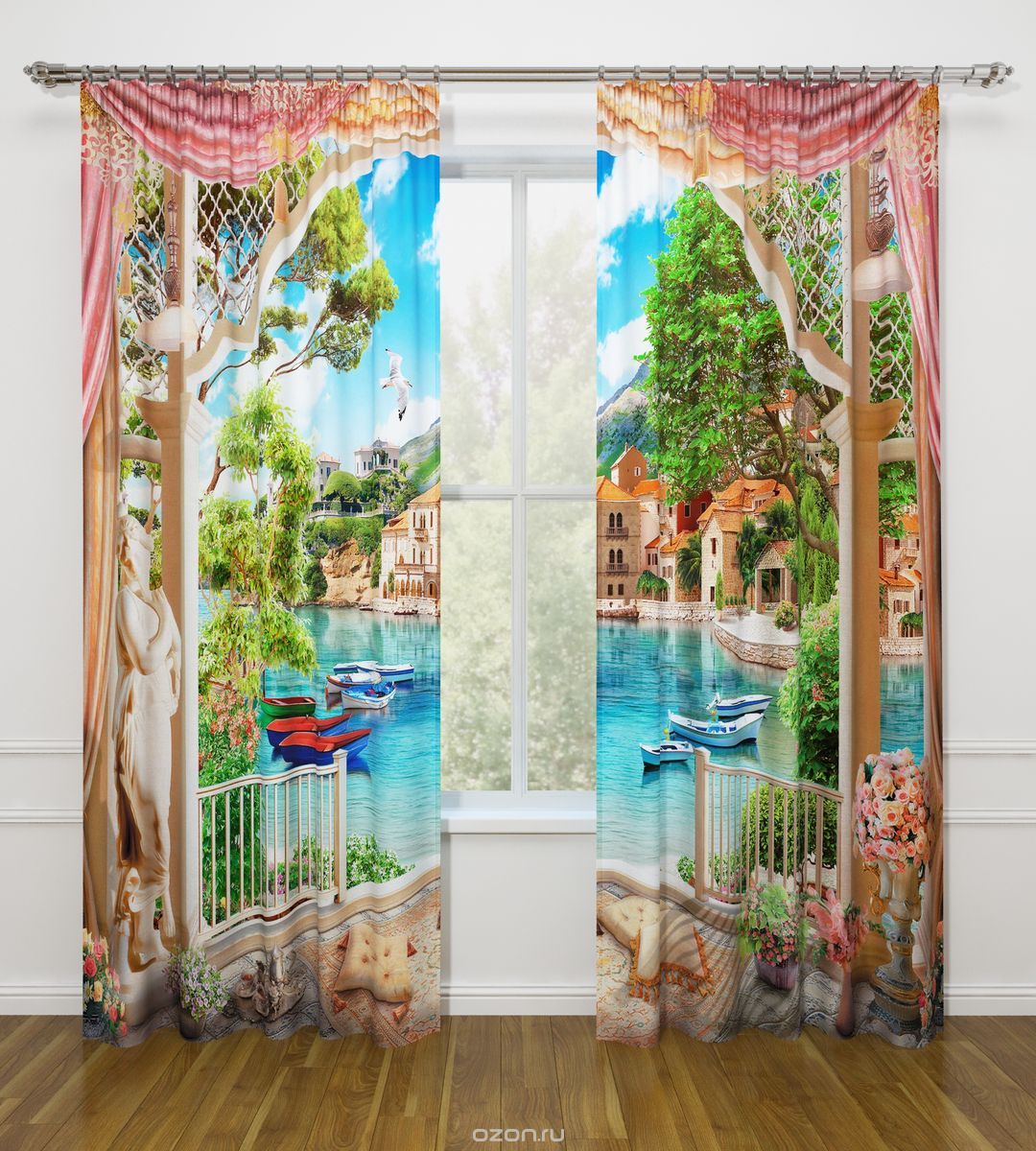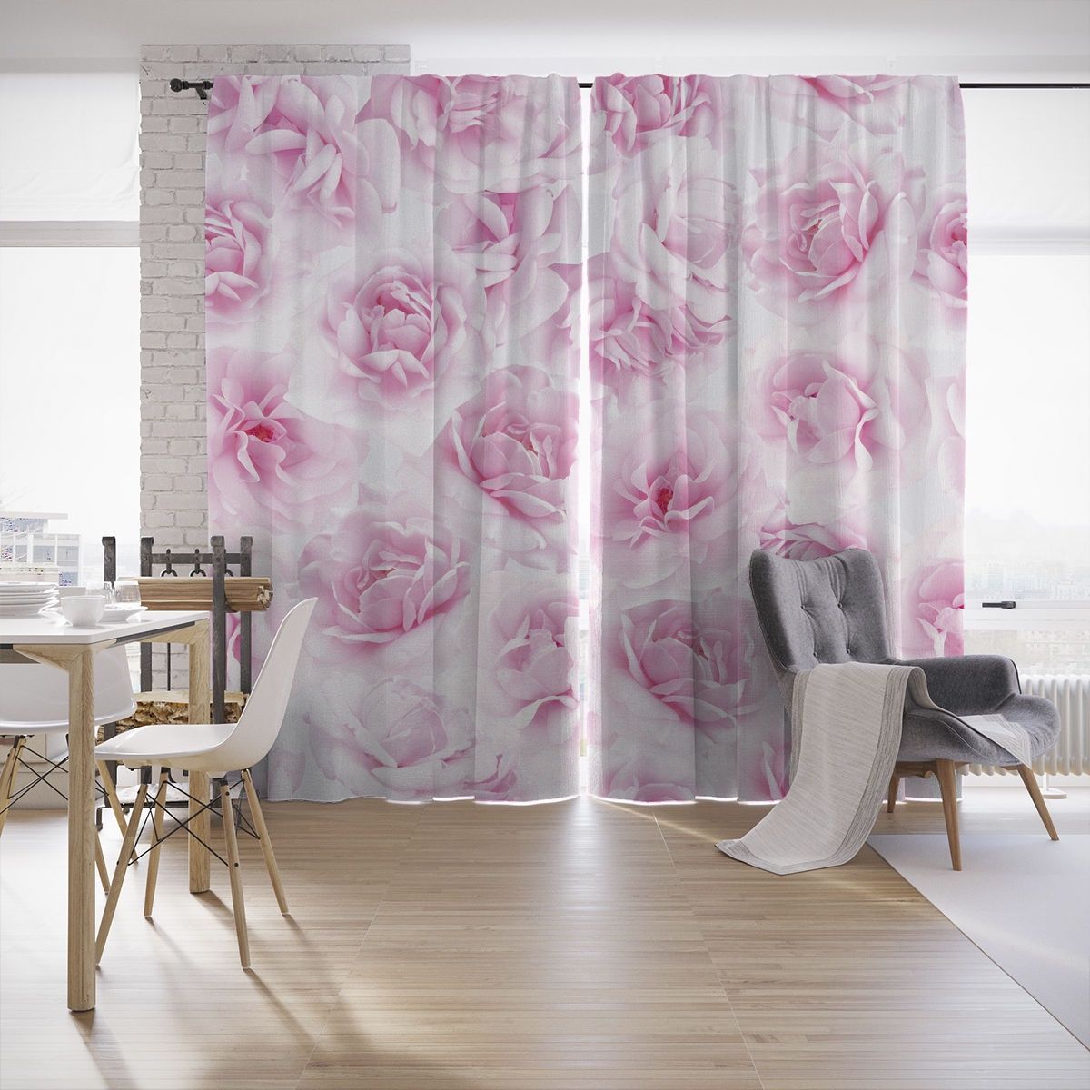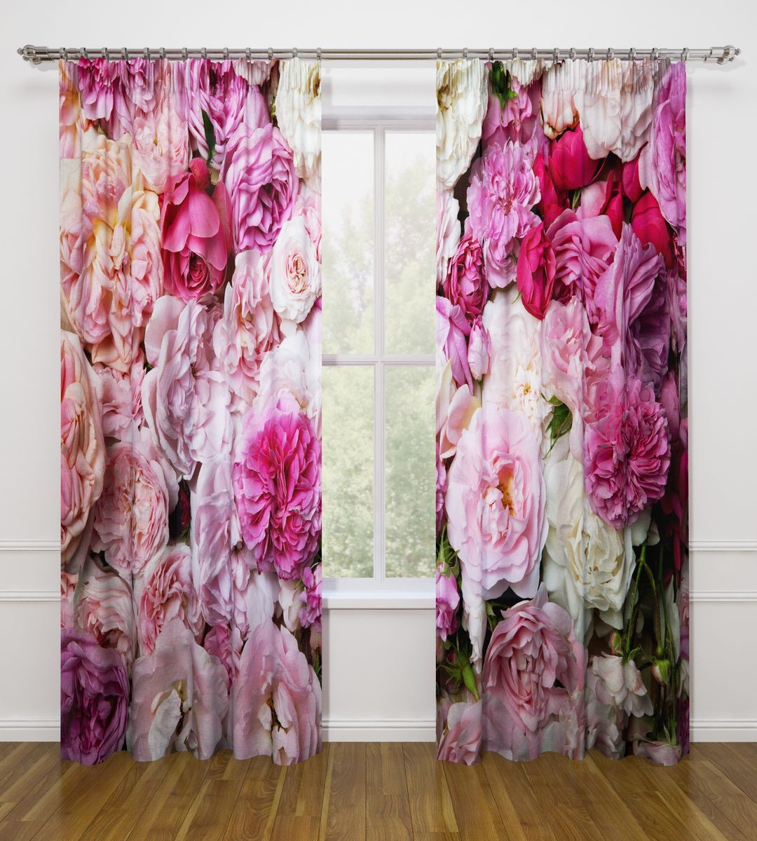 النموذج عبارة عن مجموعة من الستائر والتول. ستائر الطباعة تعطي تأثيرات بصرية ثلاثية الأبعاد ، وتتألف من الأجزاء الداخلية والخارجية.