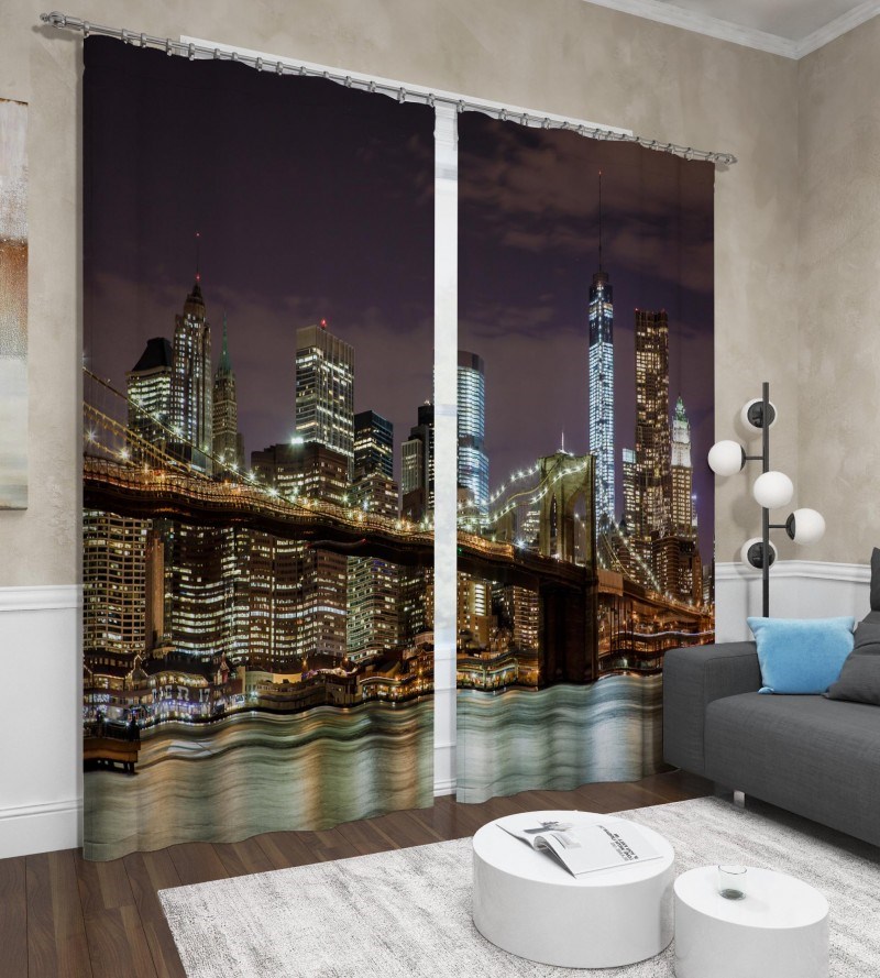 "ضوء القمر". سوف تملأ الصورة الملونة للمدينة الليلية الغرفة بألوان حديثة. سوف يعطي التصميم الداخلي تركيزًا حضريًا ويضفي لمسة أنيقة وعصرية على التصميم.