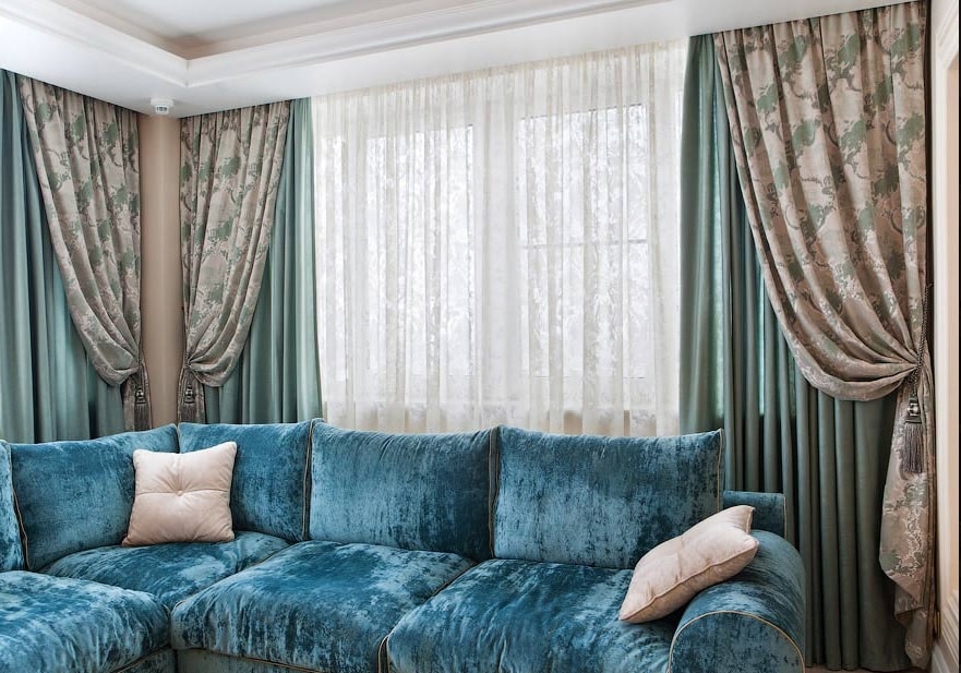 بفضل مواد عالية الجودة ، يمكن أن تصبح الستائر زخرفة مستقلة.