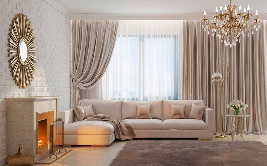 - الخيار الكلاسيكي. المواد المذكورة أعلاه كبيرة بالنسبة ل "الفساتين" النافذة ، المصنوعة في النمط الكلاسيكي. يمكنك صنع قماش ناعم وسلس. إذا رغبت في ذلك ، فإن gabardine يسمح لك بالتجربة (إنشاء الأقمشة والتجمعات والطيات). هذه التقنيات ستجعل الستار أكثر جاذبية وأنيقة. إذا قمت بتجميع النسيج بشريط في الالتقاط ، أو استخدام مغناطيس خاص ، يمكنك الحصول على تركيبة جميلة بشكل مدهش ، مصنوعة في الاتجاه الكلاسيكي. عند إنشاء ستائر بهذا النمط ، يمكنك استخدام عناصر هامش وشرابات وجديل ودانتيل وعناصر أخرى. يمكن أن يكون حتى lambrequins المصنوع من قماش مماثل زخرفة مثالية للستائر gabardine في النمط الكلاسيكي.