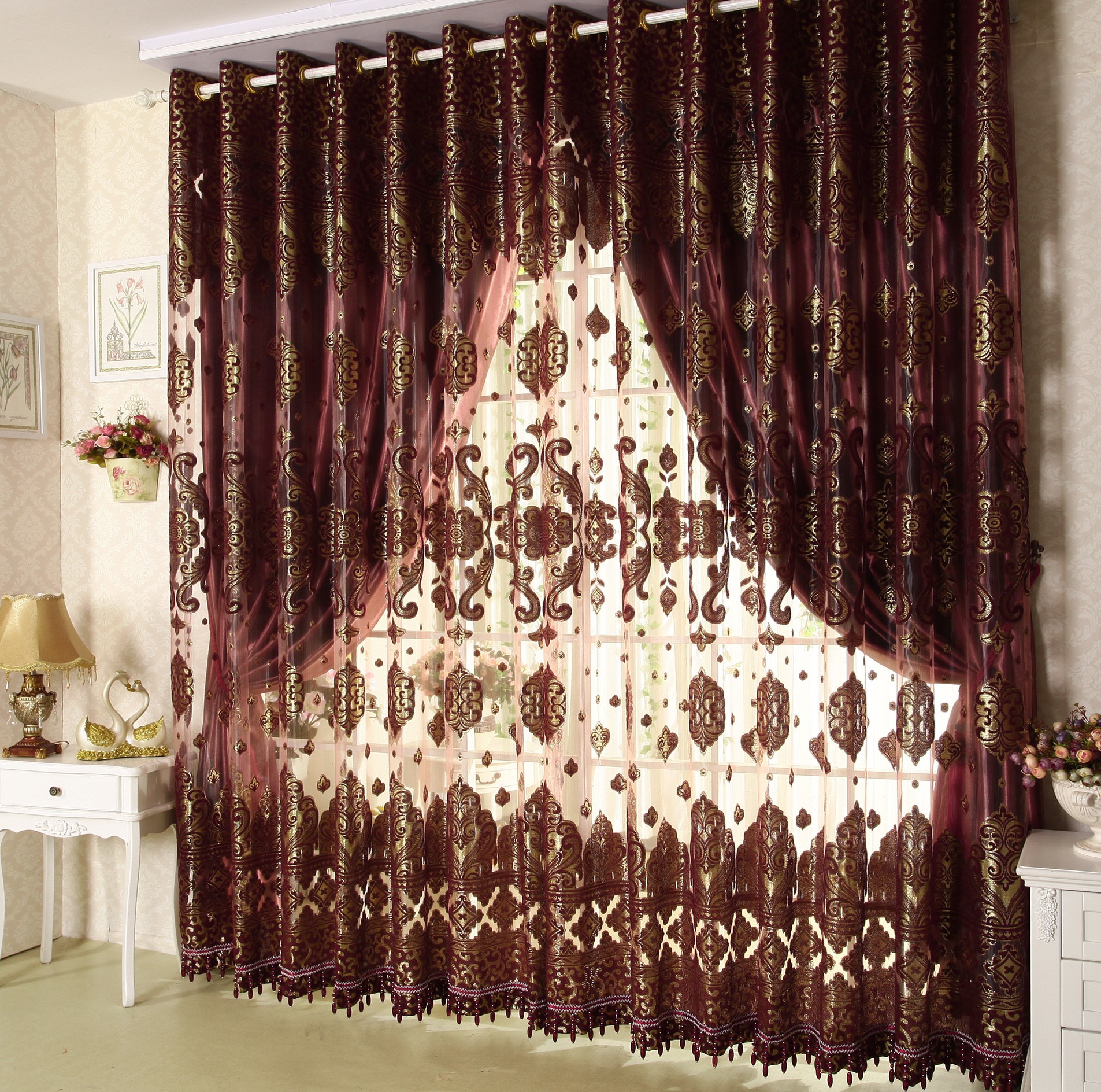 مزيج أنيق من الستائر المخملية وتول سميك بنمط مطرز.