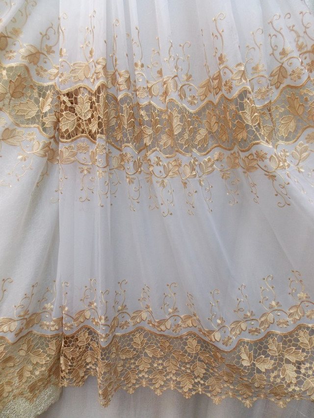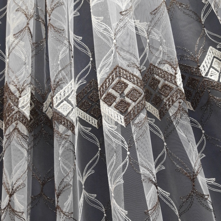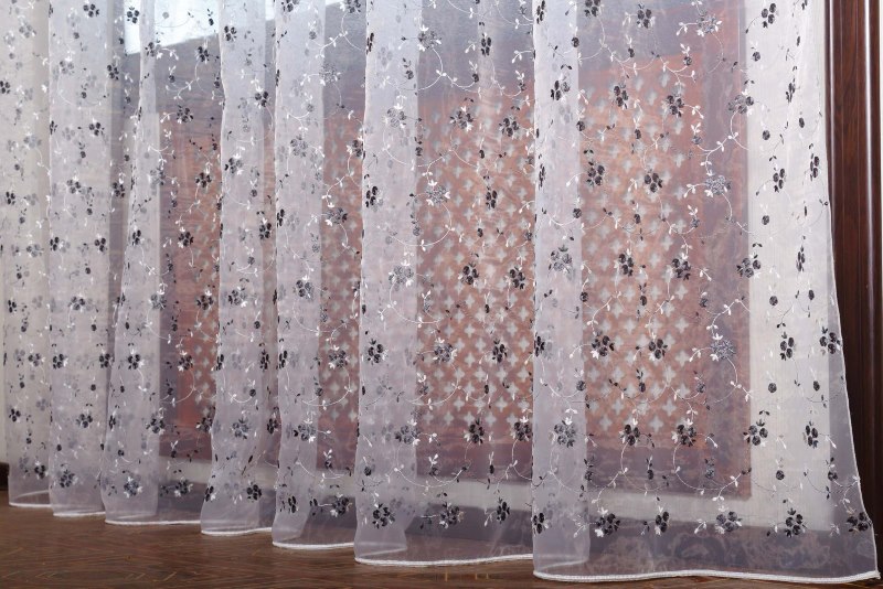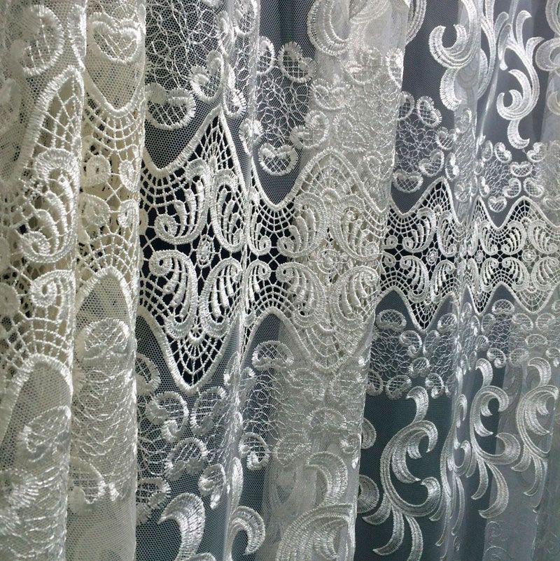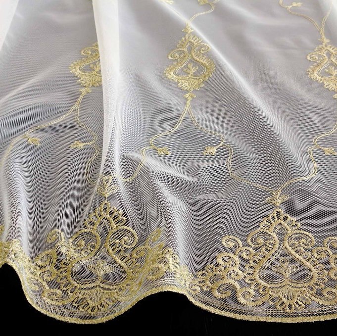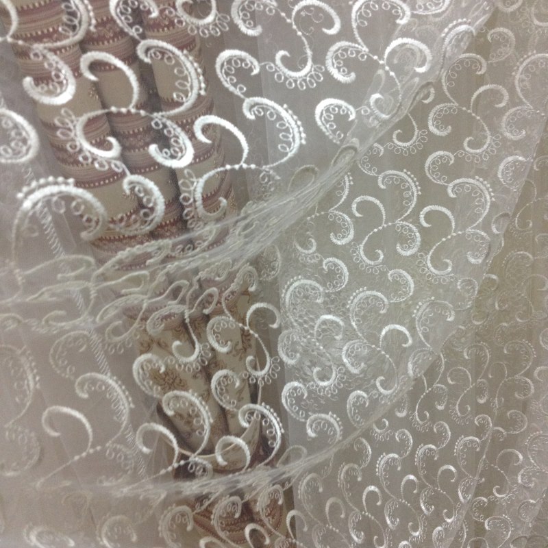 يتم دمج تول مع التطريز بشكل جيد مع الستائر المختلفة ويبدو الاكتفاء الذاتي ، إذا ما استخدمت كعنصر مستقل