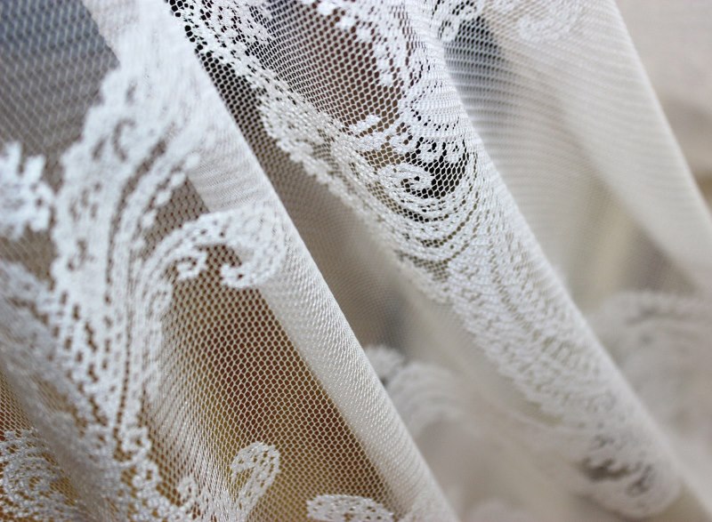 - سهولة المعالجة. النسيج مطيع جدا في الخياطة. يتم إغلاق الحواف بسهولة مع خياطة الماكينة. المواد مصممة تماما ، قابلة للتحجيم. في الوقت نفسه الشبكة لا تفقد جمالها.