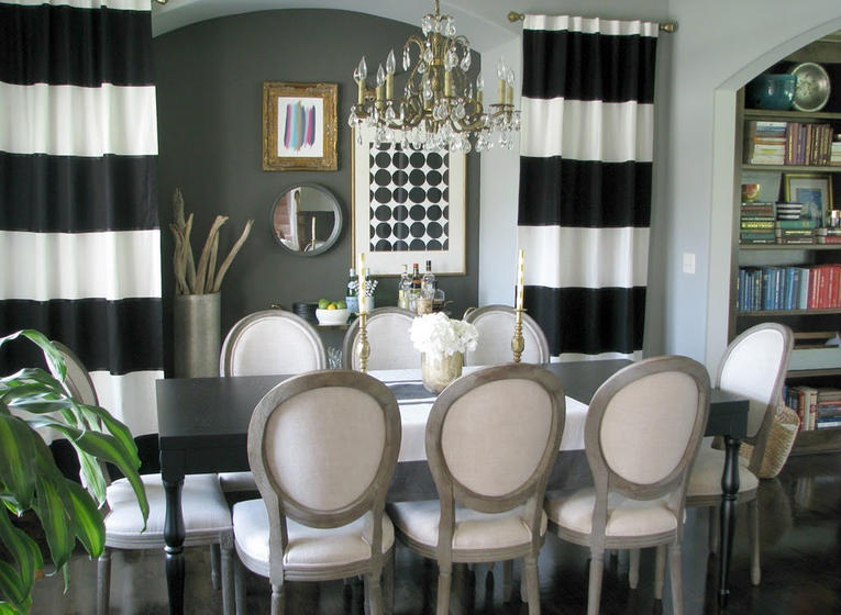 مزيج أنيق من الستائر بالأبيض والأسود وتصميم آرت ديكو