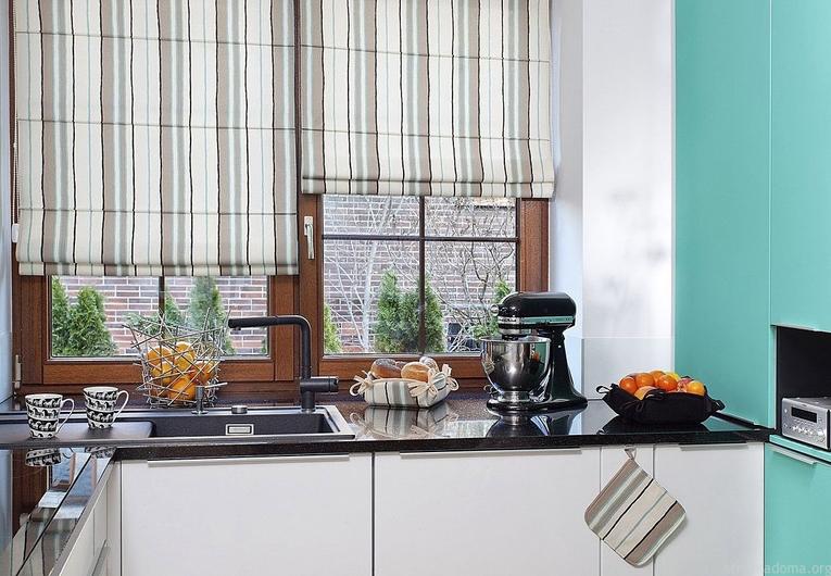 ربات البيوت الحديثة يحبون الستائر الرومانية. آلية الطي الخاصة بهم مختلفة عن اللفة. لا توجد حجرة يمكن فيها إخفاء القماش ، لكن الستائر تبدو مثيرة للاهتمام للغاية.