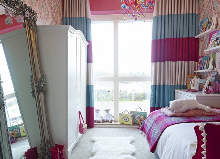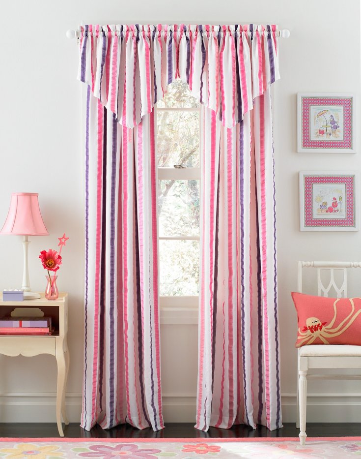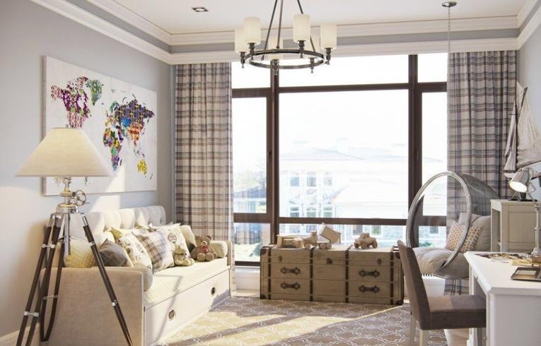 يجب أن تضطر غرفة النوم للراحة والاسترخاء. يختلف اختيار مجموعة من الستائر لغرفة نوم الأطفال قليلاً عن اختيار البالغين. هنا ينبغي التركيز على نغمات مشرقة وجديدة. تعتبر الظلال الطبيعية ، مثل الأخضر الفاتح والخوخ والوردي والأزرق والأصفر والفيروز ومشتقاتها ، خيارًا ممتازًا لغرفة نوم الأطفال.