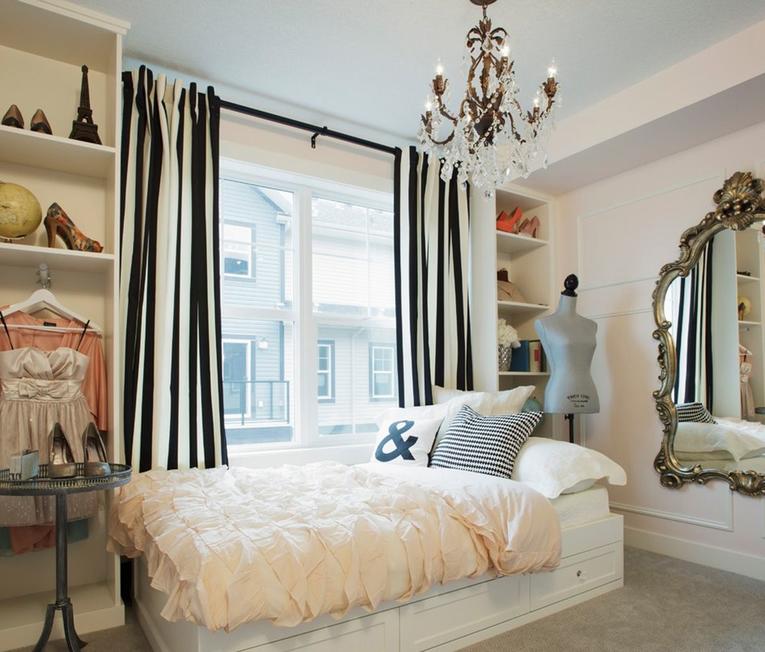 المشارب الضيقة تخفي العيوب ، وتجذب الانتباه ، لذلك هذا هو الخيار الأفضل لغرفة صغيرة
