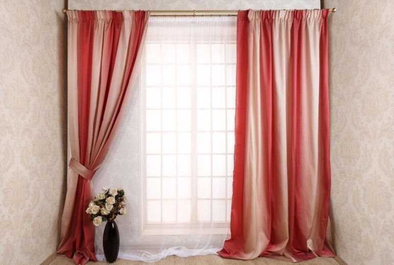 خيار مثير للاهتمام للستائر المخططة مع انتقال ألوان سلس.