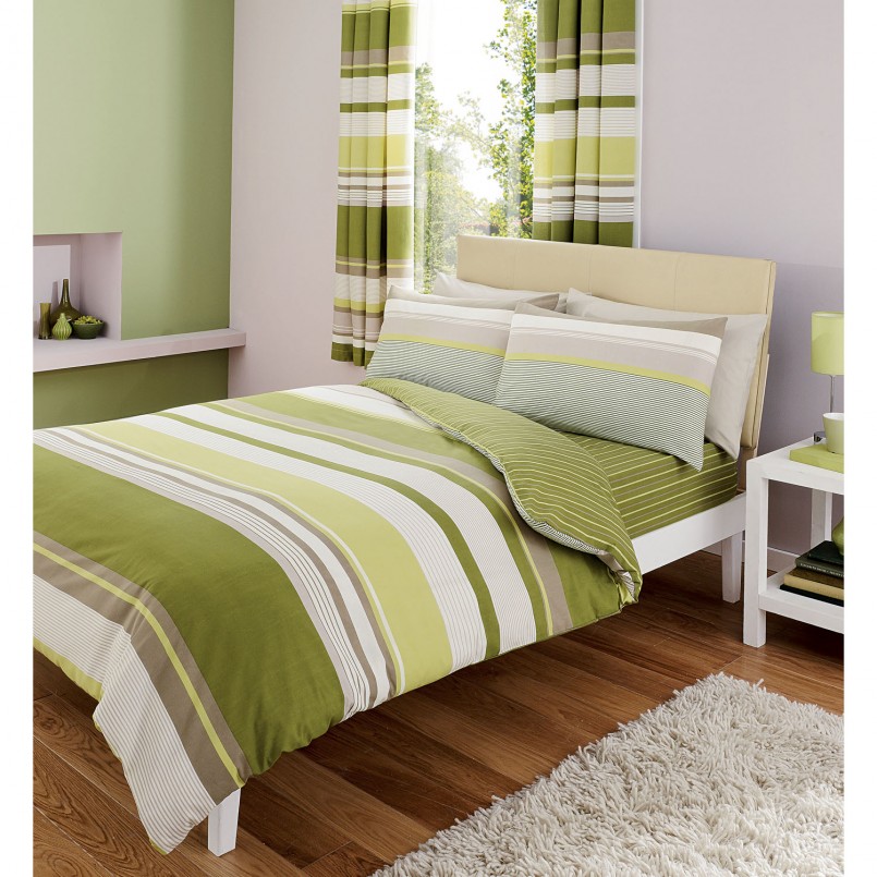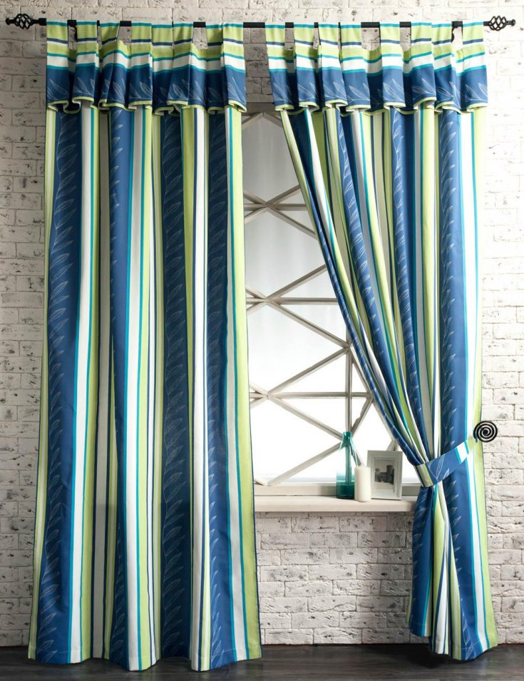 انتبه إلى الألوان الطبيعية الطازجة. ستارة في الشريط الأخضر مناسبة تمامًا لهذه الأغراض. بالاقتران مع الأثاث الأخضر ، مثل الكرسي أو الأريكة ، سيخلق هذا الحل إقامة جديدة حقًا هنا. ولكي لا تبالغ في ذلك ، التقط اللون الثاني للشريط باللون البيج الناعم أو الجير قليلاً.
