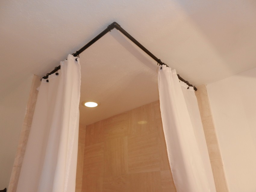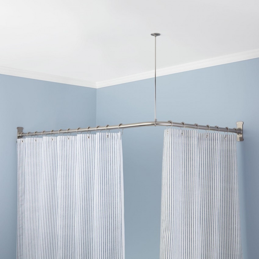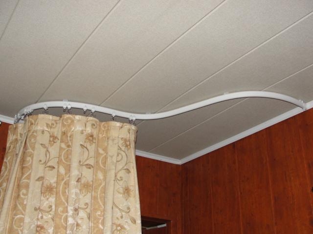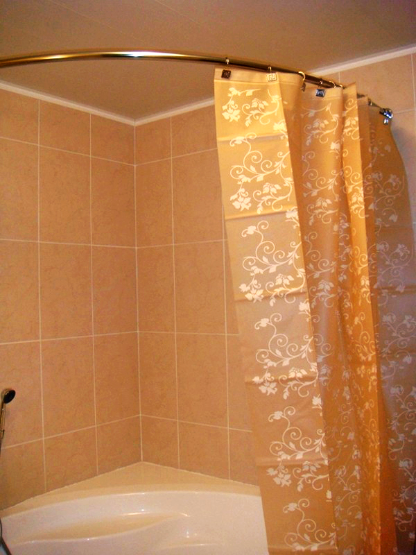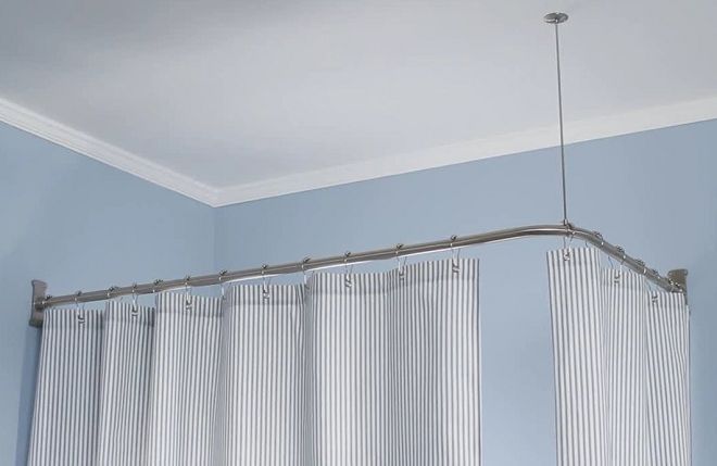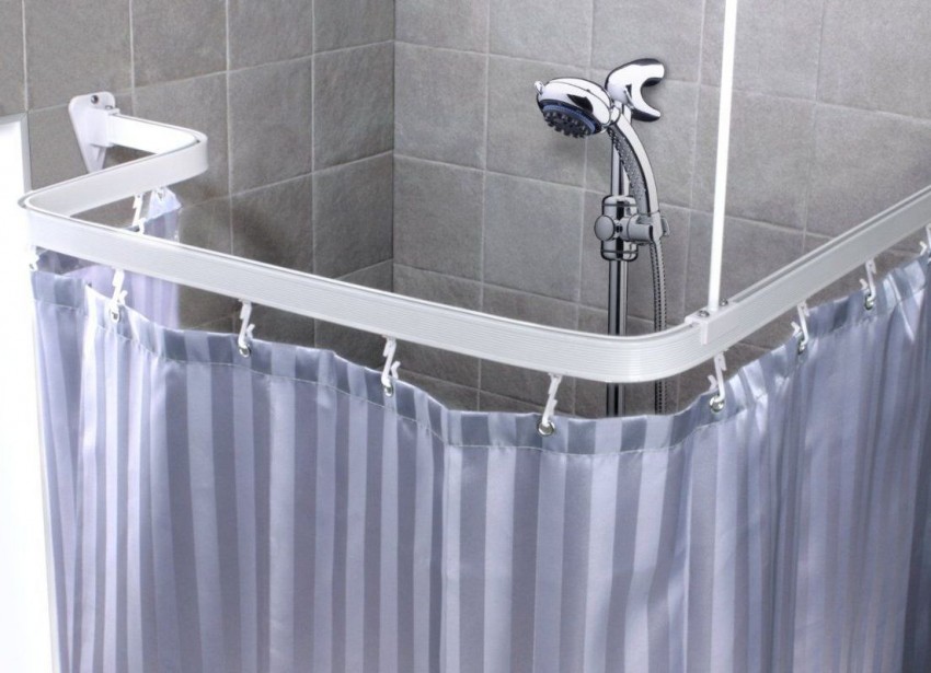 تصميم على شكل حرف L أو قوس هو أنبوب منحني. هي ، جنبا إلى جنب مع الستار مصمم لإغلاق الزاوية. قد تكون جوانب الستارة غير متناظرة ، اعتمادًا على عرض المساحة المغلقة.