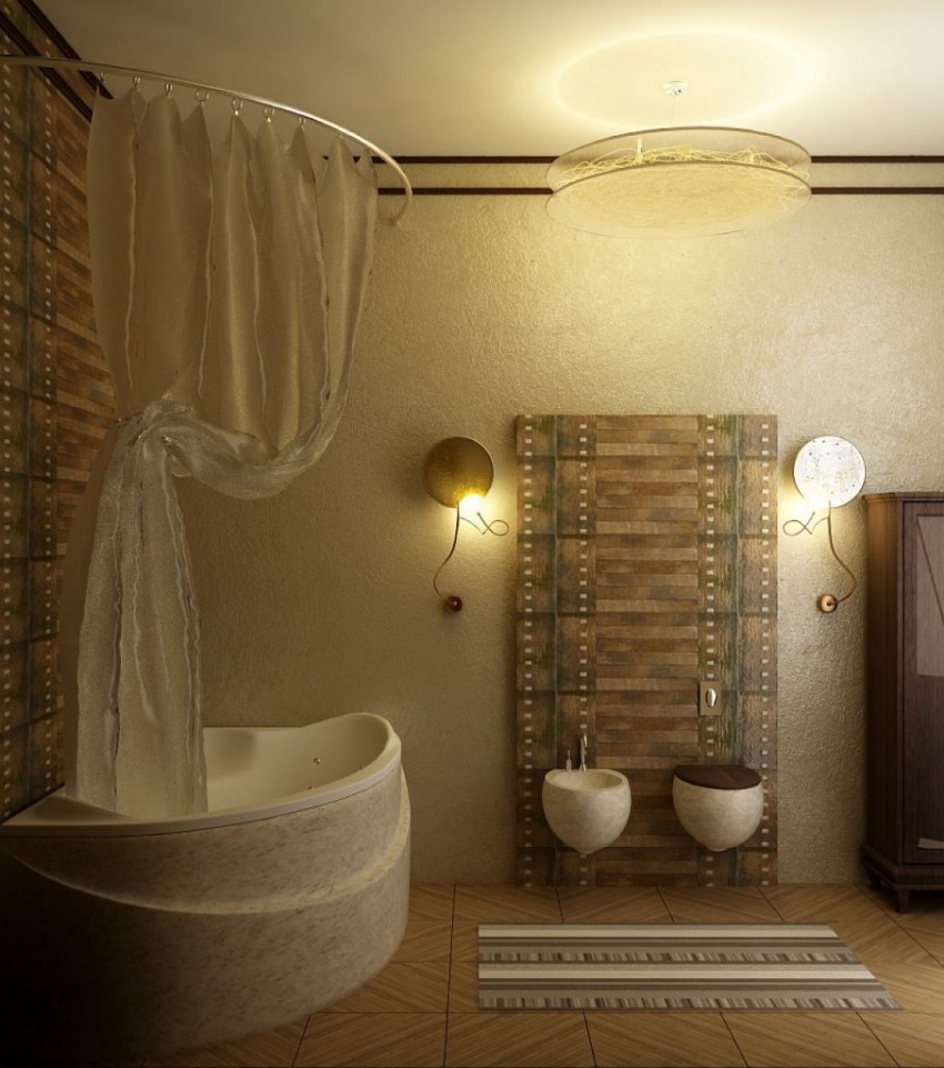 في الحمامات المشتركة الفسيحة ، يمكن أن يكون الستار بمثابة شاشة تفصل حوض الاستحمام ومغسلة المرحاض. هذا الحاجز الإضافي يضمن حميمية الإجراءات الصحية وفي نفس الوقت يخلق جماليات الغرفة.