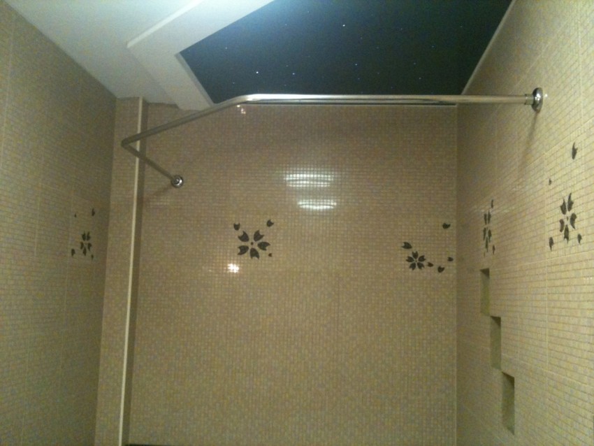 للستائر وظيفة عملية مباشرة - لحماية الغرفة من البقع المتطايرة من الحمام. يتم تثبيت عصا الستائر في الغرفة بطريقة تحمي الأرض والجدران من الرطوبة. للقيام بذلك ، استخدم المواد التالية: