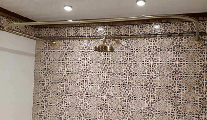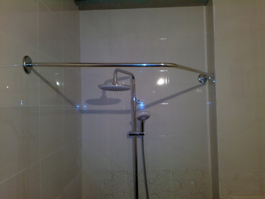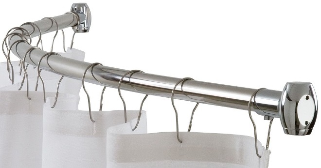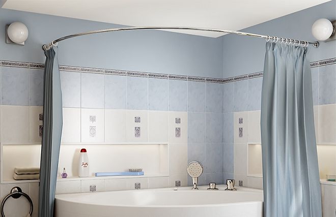 الدراية في السنوات الأخيرة هو قضيب على شكل غير عادي. مصمم بشكل أساسي لتكوينات الحمام غير القياسية. قضبان الستائر المزخرفة تبدو عضويا في مشاريع تصميم الاستحمام.