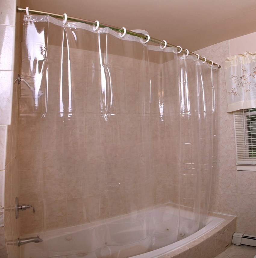 لتقليل الحمل على الستارة ، يجب أن تزن الستارة قليلاً. من الضروري اختيار مادة خفيفة مضادة للماء مع سطح أملس غير مزدحم ومقاوم لرواسب الجير والصدأ. هناك حاجة أيضًا إلى هذا الثبات للشريط المعدني ، بحيث تكون العناية به ضئيلة للغاية.