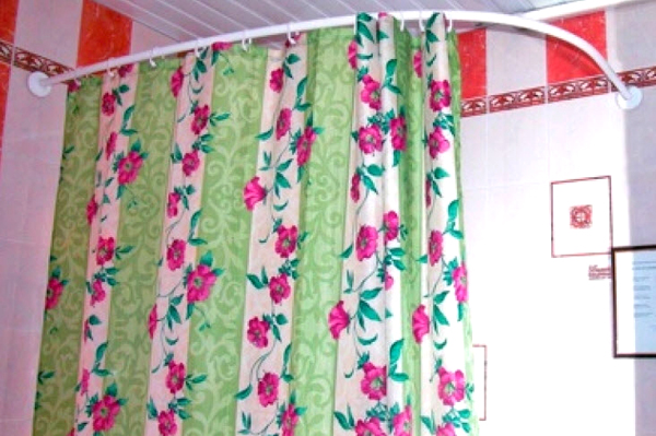يتم استخدام الشكل غير القياسي للستائر للحمامات من النوع المقابل - دائري ، زاوية ، مجعد.