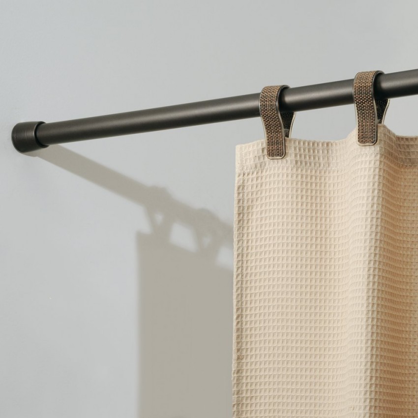 في الحمامات القياسية والمصممة تطبق كل من المنتجات القياسية وغير العادية. لخيار الميزانية سوف تناسب الأفاريز تلسكوبي تلسكوبي أو الصلبة ، وكذلك سلاسل الصلب مع حامل المقوى. اختيار أكثر تكلفة - الستائر الخشبية والمعدنية ، بما في ذلك مع الانتهاء من الزينة والغبار.