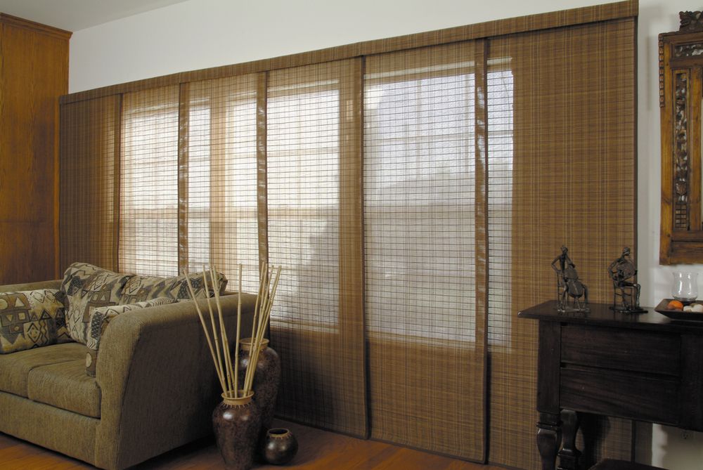 بالنسبة للديكورات الداخلية الإثنية ، من الأفضل اختيار الستائر من المواد الطبيعية - الجوت أو ألياف الخيزران أو الكتان