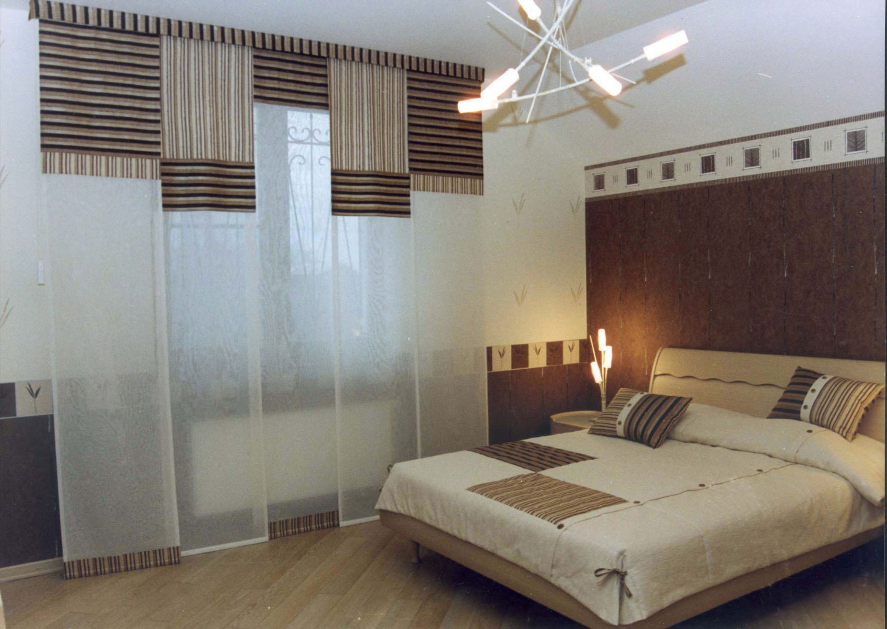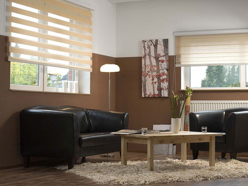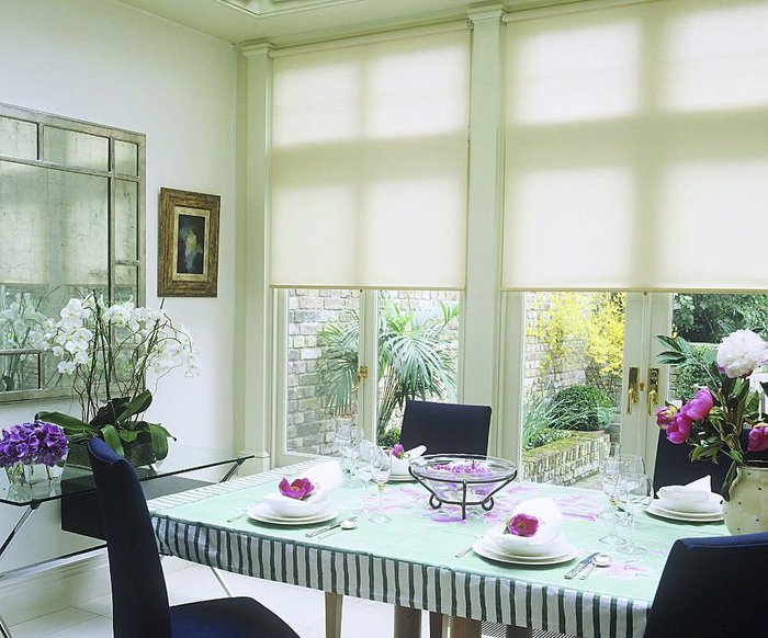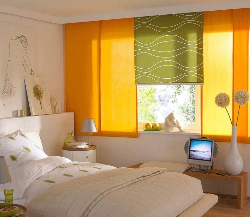 بالنسبة لغرفة النوم ، تكون ستائر التعتيم الأسطوانية (لا تنقل الضوء) مناسبة مع قماش التول الشفاف ، مما يمنح الإضاءة وتزيين الغرفة.
