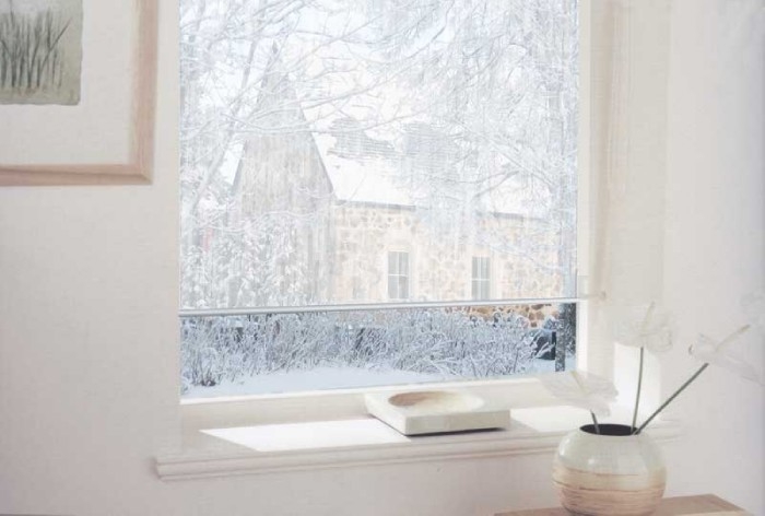 ويمكنك جعل تصميم النوافذ "غير مرئي" من خلال الجمع بين الستائر الشفافة والستائر البيضاء الرقيقة.