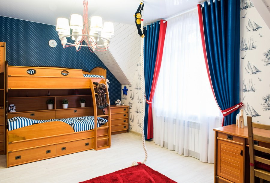 يجب اختيار لون الستائر وفقًا لنظام الألوان الكلي للغرفة بأكملها.