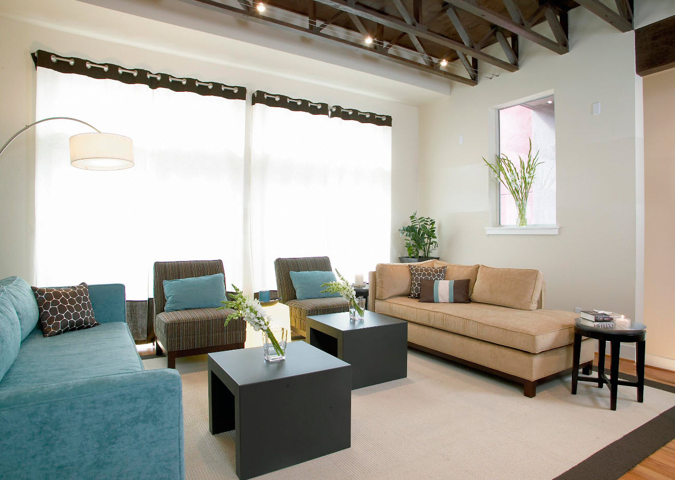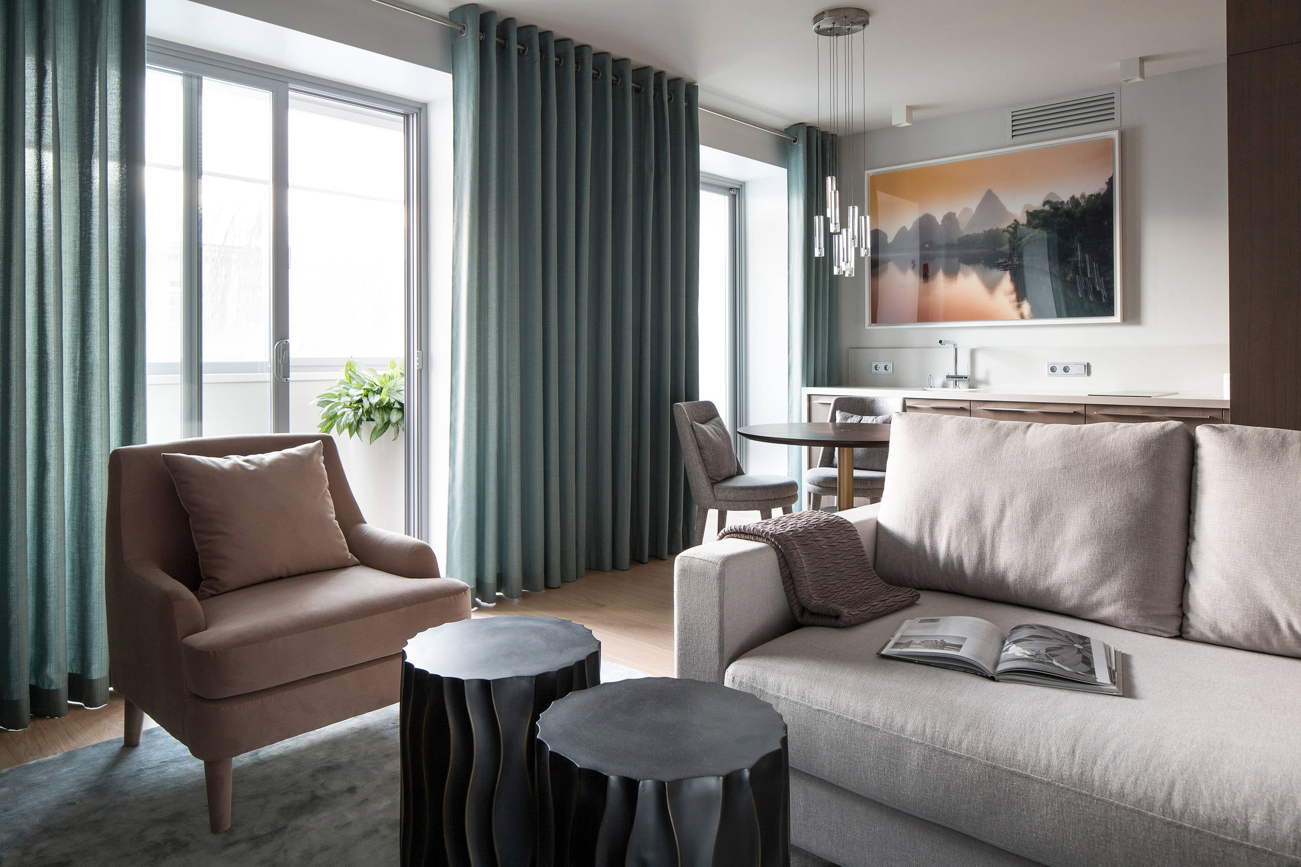 غرفة المعيشة أو القاعة بمثابة منطقة استقبال. التقط المسألة ، مع تصميم الغرفة لتبدو مناسبة. تم تصميم الستائر في الأصل للحماية من الشمس والهواء البارد.