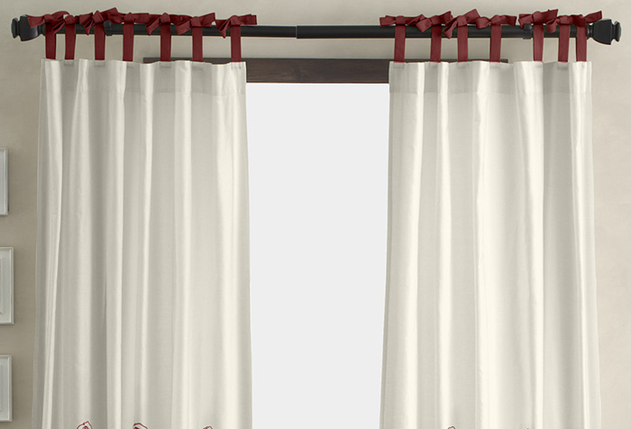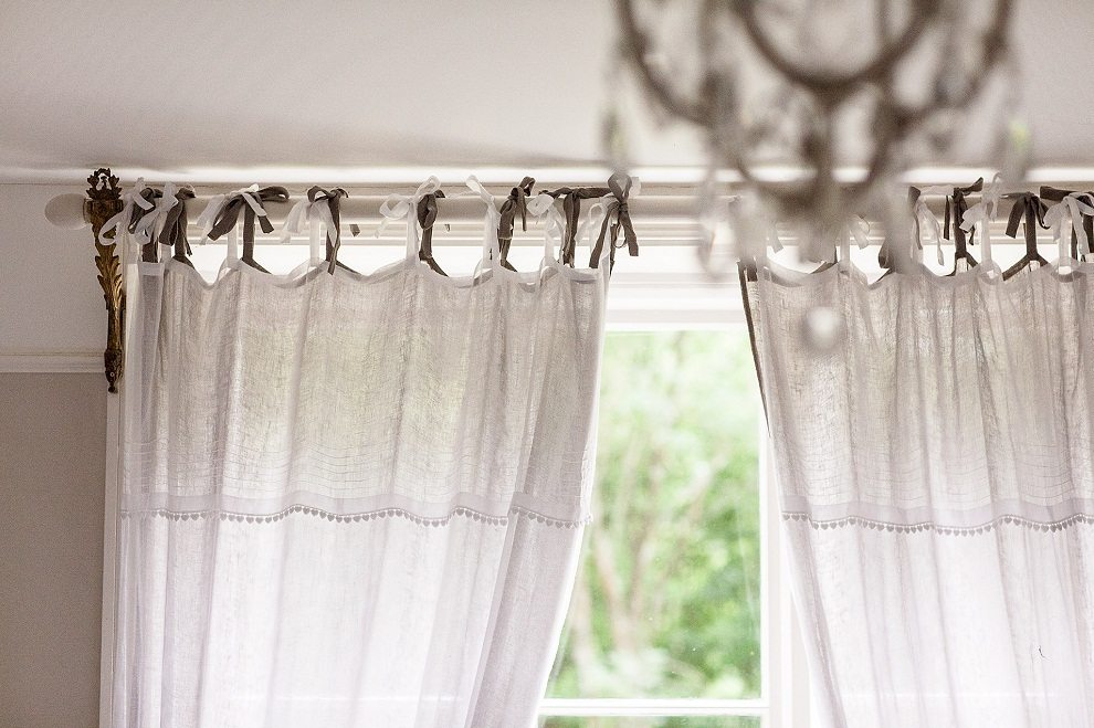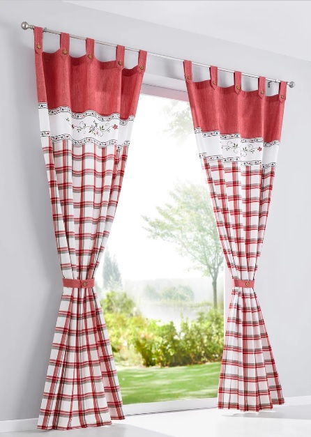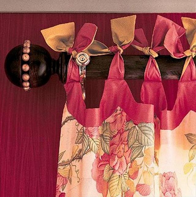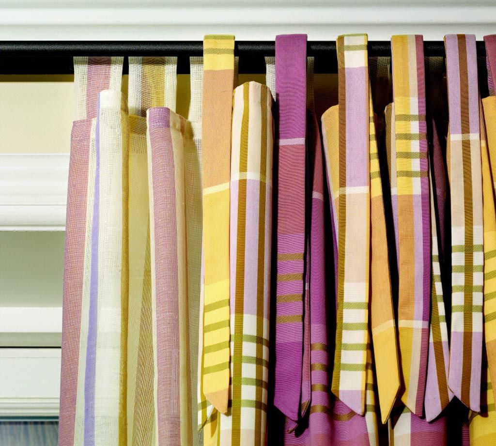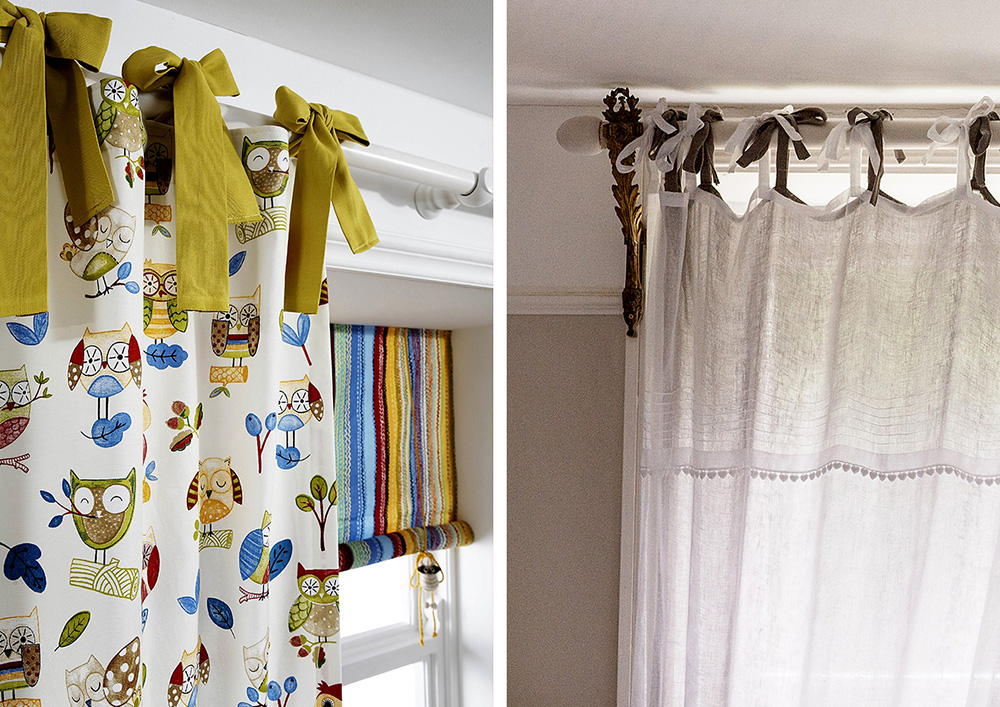 في الجزء العلوي من الستائر ، يتم استخدام شرائط من المواد الأساسية أو أي شرائط ملونة من القماش كديكور.
