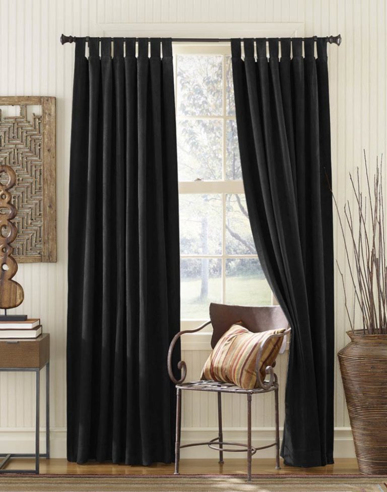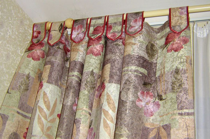 الفوائد. يتم خياطة الحلقات في الستار ، ويتم توصيل القماش إما مباشرة بالحلقات ، أو باستخدام خطافات إضافية. مثالي للأقمشة السميكة ، إنه مناسب لتكملة الطراز القديم والجرونج والكلاسيكي. مذهلة في غرف المعيشة الفسيحة.